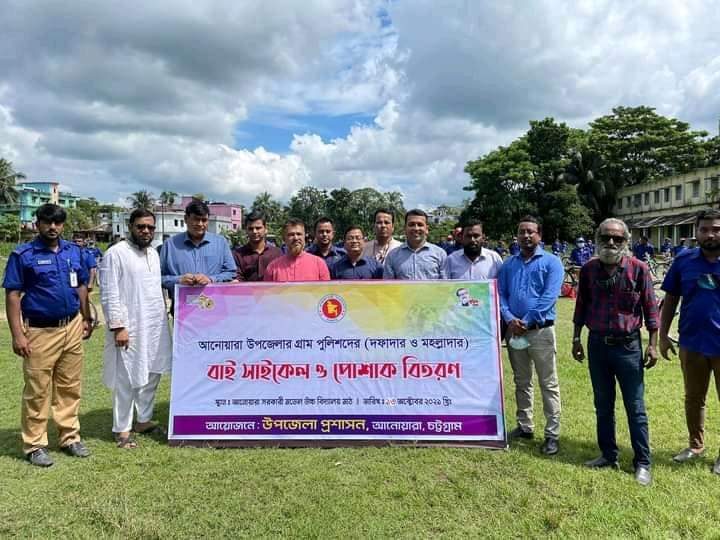 আনোয়ারা উপজেলায় গ্রামীণ এলাকায় নজরদারী বাড়িয়ে অপরাধ দমনের লক্ষ্যে ১১টি ইউনিয়নের ৯৯ জন গ্রাম পুলিশের মাঝে বাইসাইকেল বিতরণ করেন সরকারের পল্লী উন্নয়ন ও সমবায় মন্ত্রণালয়ের অতিরিক্ত সচিব চন্দন কুমার। আনোয়ারা উপজেলা প্রশাসনের আয়োজনে বুধবার(১৩ অক্টোবর) দুপুরে উপজেলা পরিষদ মাঠে এসব বাইসাইকেল বিতরণ করা হয়েছে। এসময় উপস্থিত ছিলেন উপজেলা চেয়ারম্যান তৌহিদুল হক চৌধুরী,উপজেলা নির্বাহী কর্মকর্তা (ইউএনও) শেখ জোবায়ের আহমেদ, উপজেলা সহকারী কমিশনার (ভূমি) তানভীর হাসান চৌধুরী, চেয়ারম্যানদের মাঝে অসীম কুমার দেব, শাহাদাত হোসেন চৌধুরী, এম.এ কাইয়ুম শাহ, মো. ইয়াছিন হিরো। ইউএনও শেখ জোবায়ের আহমেদ জানান, গ্রামীণ এলাকায় যোগাযোগ বিচ্ছিন্নতার মধ্যেও কষ্ট করে দায়িত্ব পালন করেন গ্রাম পুলিশের সদস্যরা। তাই তাদের চলাচল ও কাজে গতি বৃদ্ধি করতে উপজেলার ৯৯ গ্রাম পুলিশকে সাইকেল ও পোষাক দেওয়া হয়েছে।