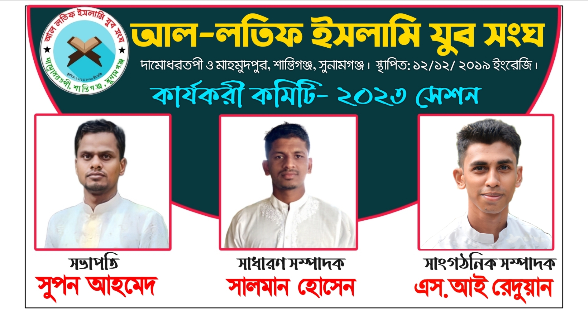 শহিদুল ইসলাম রেদুয়ান: সুনামগঞ্জের জেলার শান্তিগঞ্জ উপজেলাধীন পূর্ব পাগলা ইউনিয়নের দামোধরতপী মাহমুদপুর গ্রামের ঐতিহ্যবাহী আল-লতিফ ইসলামী যুব সংঘটি মেধা লালন ইসলামিক চর্চা ও সামাজিক দায়বদ্ধতা এবং বঞ্চিত অবহেলিত মানুষের কল্যাণে কাজ করতে অসহায় দুস্থদের পাশে দাড়াতে এই সংগঠনটি ১২ই ডিসেম্বর ২০১৯সালে গঠিত হয়।