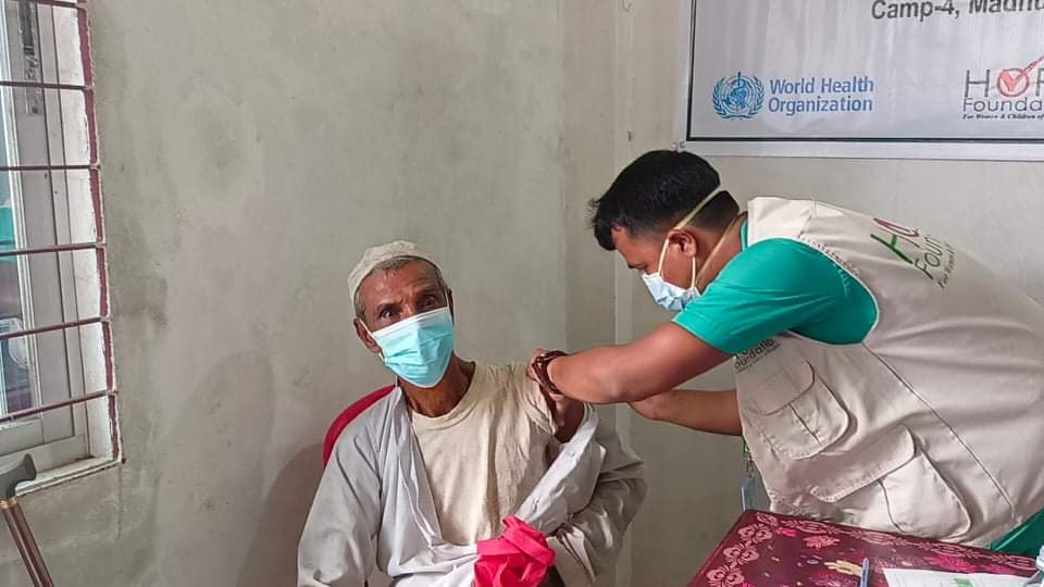রোহিঙ্গাদের মধ্যে প্রথম দফায় ৫৫ বছরের ঊর্ধ্বে ৪৮ হাজার রোহিঙ্গাকে ৫৬ টি কেন্দ্রে করোনা টিকা দেওয়া হচ্ছে। পাশাপাশি একই সময়ে ক্যাম্পের মাঝি, মসজিদের ইমাম এবং টিকাদান কাজে নিয়োজিত স্বেচ্ছাসেবকদেরও টিকা দেয়া হচ্ছে। পাশাপাশি ক্যাম্পে টিকাদান টিকাদান কার্যক্রমে স্বাস্থ্য বিভাগের সাথে প্রশিক্ষণপ্রাপ্ত ১৮৬টি টিম কাজ করছে।