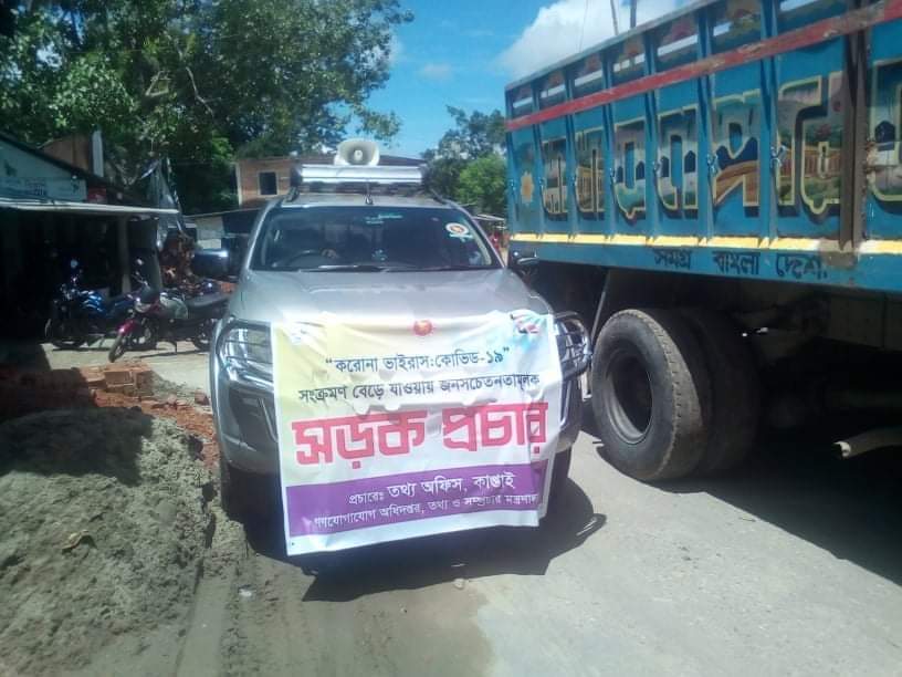 কাপ্তাই তথ্য অফিসের করোনা প্রতিরোধে সড়ক প্রচারনা রাজস্থলীতে-হাওড় বার্তা