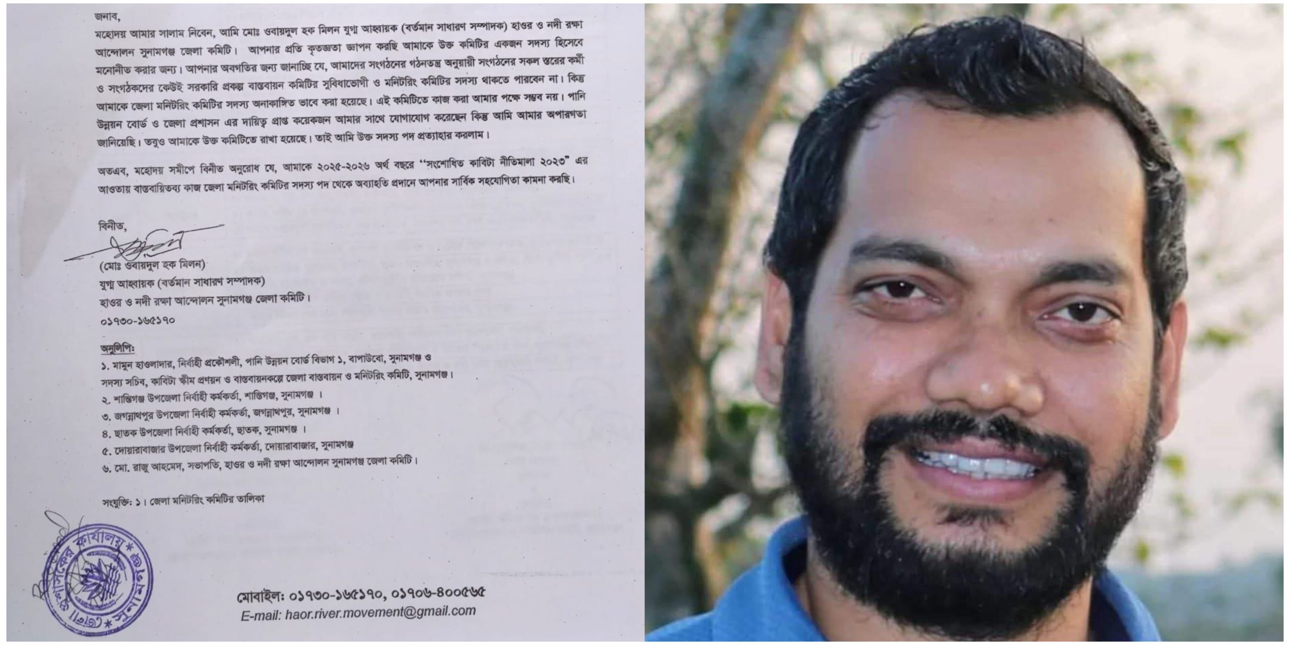 কাবিটা জেলা মনিটরিং কমিটি থেকে অব্যাহতি চাইলেন মিলন