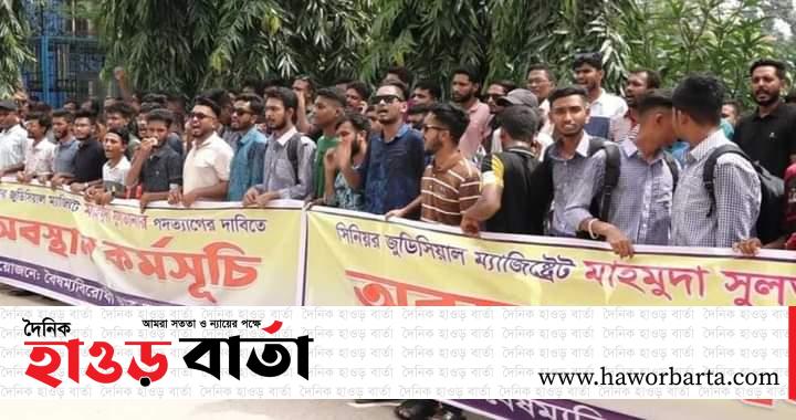 জুয়েল মাহমুদ উজ্জল: কুষ্টিয়ার সিনিয়র জুডিশিয়াল ম্যাজিস্ট্রেট মাহমুদা সুলতানার পদত্যাগ দাবিতে আদালত চত্বরে বিক্ষোভ করেছেন বৈষম্য বিরোধীছাত্র-জনতা। এ সময় বিএনপি ও অঙ্গসংগঠনের নেতাকর্মীরা এতে অংশ নেয়। সোমবার (২৩ সেপ্টেম্বর ) সকাল সাড়ে ১০টার দিকে চিফ জুডিশিয়াল ম্যাজিস্ট্রেট আদালত ভবনের সামনে অবস্থান নিয়ে বিভিন্ন স্লোগান দেন তারা। পরে বেলা ১১টার দিকে বিক্ষোভ কারীরা একটি মিছিল নিয়ে আদালত চত্বর প্রদক্ষিণ করেন।