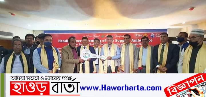 ২৬ তারিখ শনিবার বিকেলে রোটারি ক্লাব অব কুষ্টিয়ার সভাপতি বিশিষ্ট শিল্পপতি ও কুষ্টিয়ার রোটারী ক্লাবের সভাপতি কামরুজ্জামান নাসিরের হাতে ভারত সরকারের পক্ষ থেকে একটি লাইফ সাপোর্ট অ্যাম্বুলেন্সের চাবি হস্তান্তর অনুষ্ঠানে যোগ দিয়ে তিনি এ কথা বলেন।