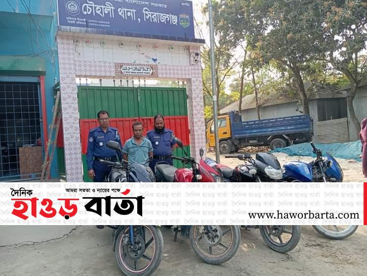 চৌহালীতে চোরাই মোটরসাইকেল সহ ১ জন গ্রেফতার।