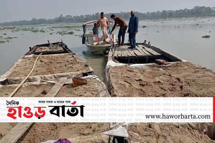 ছাতকে অবৈধ বালুতে ২ ড্রেজার আটক
