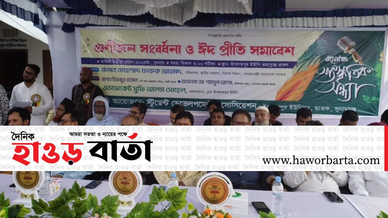 ছাতকের ইসলামপুর ইউনিয়ন "স্টুডেন্ট ডেভেলপমেন্ট এসোসিয়েশন"র উদ্যোগে ইসলামপুর ইউনিয়ন পরিষদ কমপ্লেক্স প্রাঙ্গনে গত ২ এপ্রিল বুধবার বিকেলে এ গুনীজন সংবর্ধনা ও ঈদ প্রীতি সমাবেশ অনুষ্টিত হয়।