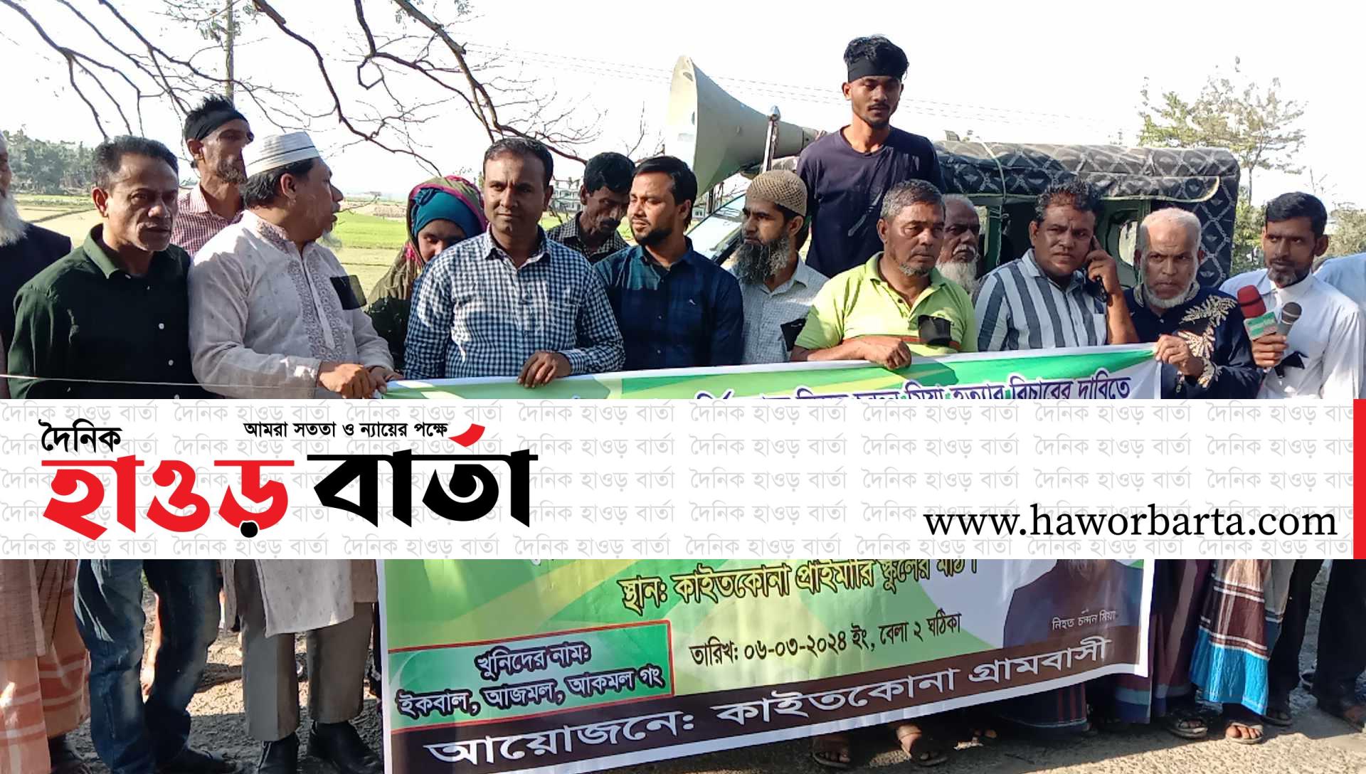 বুধবার (৬ মার্চ) বিকাল ৩ ঘটিকায় উপজেলার জাউয়া বাজার ইউপির কাইতকোনা সরকারি প্রাথমিক বিদ্যালয়ে মাঠে গ্রামবাসীর উদ্যোগে প্রতিবাদ সভার আয়োজন করা হয়। পরবর্তীতে সুনামগঞ্জ টু সিলেট মহাসড়কের মধ্যস্থ কাইতকোনা নামক স্থানে প্রায় ঘন্টাব্যাপী মানববন্ধন করা হয়।