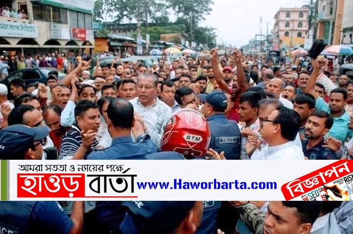 ছাতকে পুলিশের বাঁধা অতিক্রম করে বিএনপির বিক্ষোভ মিছিল।