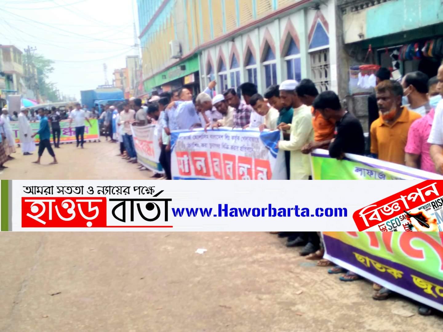লাফার্জ হোলসিম সিমেন্ট কারখানা কর্তৃক ক্রাশিং চুনাপাথর খোলাবাজারে বিক্রিতে সুপ্রীম কোর্টের আপীল ডিভিশনের স্থগিতাদেশ উপেক্ষা করে চুনাপাথর ক্রাশিয় প্লান্ট চালু রাখার প্রতিবাদে ছাতক ব্যবসায়ী-শ্রমিক ঐক্য পরিষদের ব্যানারে ব্যবসায়ীদর উদ্দ্যোগে গত শনিবার সকালে ছাতক বাজারের ট্রাফিক পয়েন্টে শ্রমিক ও ব্যবসায়ীদের বিক্ষোভ মিছিল, মানববন্ধন ও প্রতিবাদ সমাবেশে অনুষ্ঠিত হয়েছে।