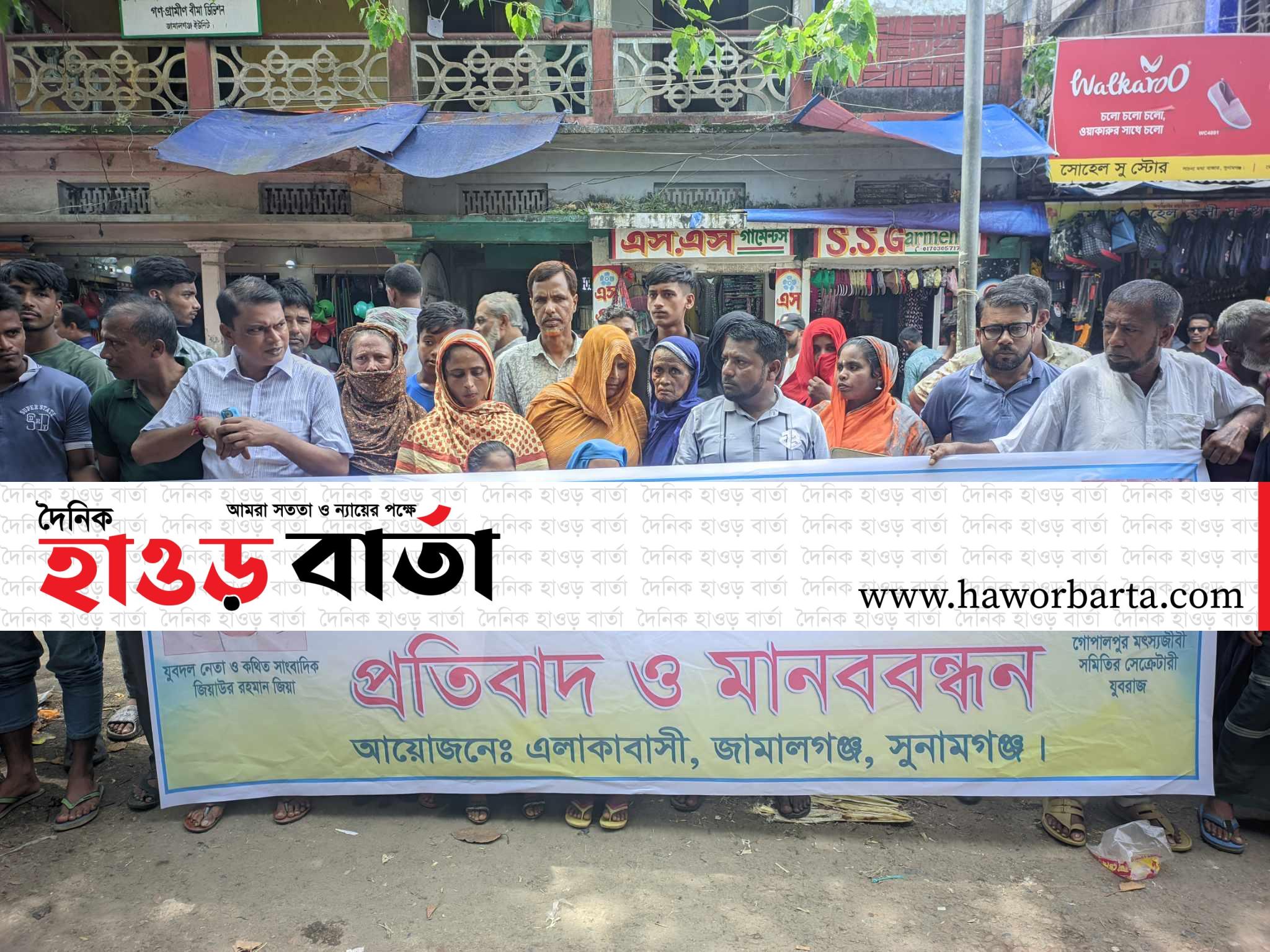 জামালগঞ্জে ইউপি চেয়ারম্যানের ওপর মিথ্যা অপ্রচারের বিরুদ্ধে প্রতিবাদী মানববন্ধন