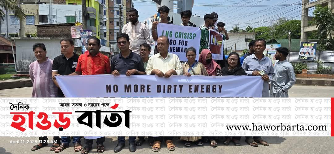 শুক্রবার (১১ এপ্রিল) ১১ ঘটিকায় হাউস, ক্লিন, বিডব্লিওজিইডির উদ্যোগে সুনামগঞ্জ শহরের হোসেন বখত চত্বরে অনুষ্ঠিত মানববন্ধনে বাংলাদেশে জীবাশ্ম জ্বালানি নির্ভরতা কমানোর প্রয়োজনীয়তার ওপর জোর দেওয়া হয়। বাঁশখালী আন্দোলনের স্মরণে আয়োজিত এই কর্মসূচিতে স্থানীয় জনগোষ্ঠী, শিক্ষার্থী ও পরিবেশবাদী কর্মীরা অংশগ্রহন করেন।