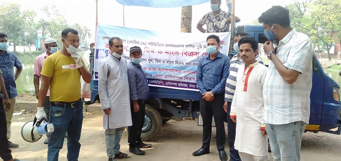 দেশব্যাপী করোনা পরিস্থিতিতে জনসাধারণের প্রাণিজ পুষ্টি নিশ্চিতকরণের লক্ষ্যে ভ্রাম্যমাণ দুধ,ডিম ও মাংস বিক্রয়ের ব্যাবস্থা করা হয়েছে।