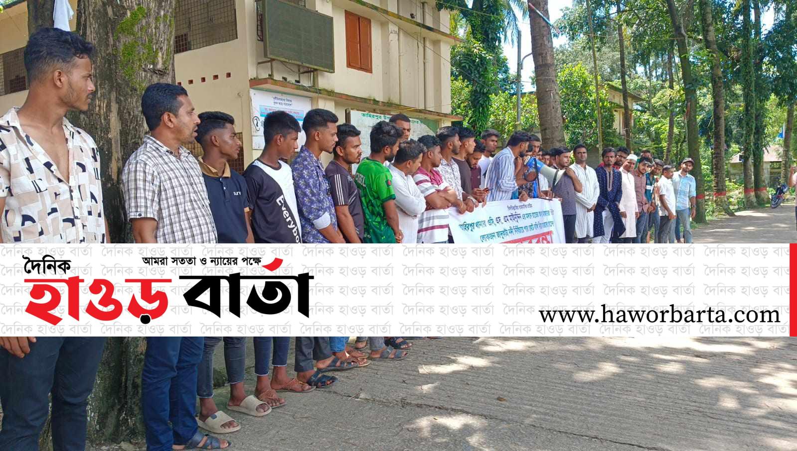 তাদের অভিযোগ থানার ওসি মাইন উদ্দিনের মদদে রানু মেম্বার লোকজন নিয়ে নির্বিচারে নদীর পাড় কেটে বালু নিয়ে যায়। শনিবার দুপুর ১২টায় উপজেলা পরিষদ চত্বরে উপজেলা বৈষম্য বিরোধী ছাত্র আন্দোলনের সমন্বয়ক আজিজুর রহমান কাউসারের নেতৃত্বে এ মানববন্ধন অনুষ্ঠিত হয়। মানববন্ধনে বক্তারা বলেন, তাহিরপুর উপজেলার সীমান্ত নদী যাদুকাটায় থানার অফিসার ইনচার্জ (ওসি) মাইন উদ্দিনের মদদে বাদাঘাট ইউপি সদস্য রানু মিয়া (রানু মেম্বার) প্রকাশ্যে পাড় কেটে বালু তোলায় অন্তত ২০ থেকে ২৫ টি গ্রামের মানুষ বসতবাড়ি হারানোর ঝুঁকিতে পড়েছেন। তাদের এমন কর্মকাণ্ডে ইতিমধ্যে নদীর পাড়ের অনেক বাড়িঘর বিলীন হয়ে গেছে। অসংখ্য বার থানা প্রশাসনকে অবগত করলেও ওসি পদক্ষেপ না নিয়ে উল্টো রানু মেম্বারের কাছ থেকে অনৈতিক সুবিধা নিয়ে পাড় কাটায় সহযোগীতা করছেন। পাড় কাটার মূল হোতা রানু মেম্বার যাদুকাটা নদীর ইজারাদার রতন মিয়ার লোক বলেও অভিযোগ করেন তারা। ছাত্ররা দাবি করে বলেন, যাদুকাটা নদীর পাড় কাটার মদদ দাতা ওসি মাইন উদ্দিনকে দ্রুত অপসারণ করতে হবে। পাড় কাটার মূল হোতা রানু মেম্বারকে দ্রুত গ্রেফতার করে শাস্তির আওতায় আনতে হবে। এবং যাদুকাটা নদীর ইজারা বাতিল করতে হবে। তা নাহলে পাড় কাটার কারনে যাদুকাটা নদীর পাড়ের গ্রামগুলো বিলীন হয়ে যাবে। ওসি মাইন উদ্দিন কে প্রত্যাহার না করলে ছাত্ররা কঠিন আন্দোলনের হুশিয়ারী দেন তারা। মানববন্ধন শেষে ছাত্ররা ইউএনওর কাছে স্মারক লিপি প্রদান করে। এবিষয়ে যাদুকাটা নদীর ইজারাদার রতন মিয়া বলেন, অভিযুক্ত রানু মেম্বার আমার লোক না। রানু মেম্বার সহ এই পাড়ের কয়েকজন নেতা এর সাথে জড়িত। আমার লোকজন পাড় কাটায় বাধা দিতে গেলে তারা আমার লোকের উপর হামলা করে। আমি সব সময় পাড় কাটার বিপক্ষে। এর আগে কয়েকবার জেলা প্রশাসক বরাবর পাড় কাটার বিরুদ্ধে লিখিত অভিযোগও করেছি। পাড় কাটার সাথে জড়িতদের আইনের আওতায় আনা হোক।