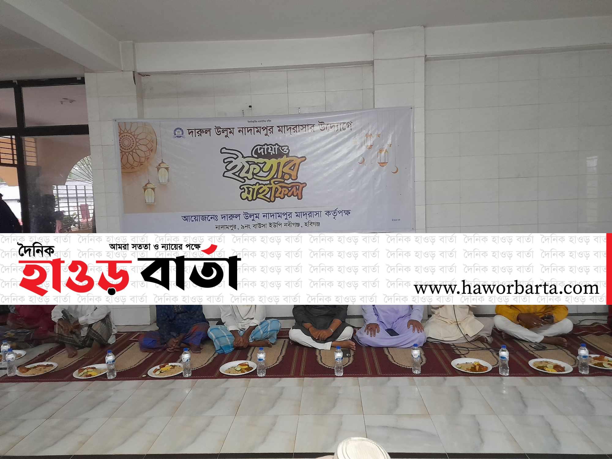 নবীগঞ্জ উপজেলা প্রতিনিধি : নবীগঞ্জ উপজেলার বাউসা ইউনিয়নের নাদামপুর গ্রামের দারুল উলুম নাদামপুর মাদ্রাসার উদ্যোগে বিশাল ইফতার ও দোয়ার মাহফিলের আয়োজন করা হয়েছে। সোমবার (০১ এপ্রিল) সন্ধ্যায় উক্ত ইফতার ও দোয়া মাহফিলে দারুল উলুম নাদামপুর মাদ্রাসার দাতা সদস্য ও প্রতিষ্ঠাতা মাওলানা নজরুল ইসলাম, মাওলানা আশরাফুল ইসলাম, দারুল উলুম নাদামপুর মাদ্রাসার প্রধান শিক্ষক মাওলানা শামীম আহমেদ এর পরিচালনায়। প্রধান অতিথি হিসেবে উপস্থিত ছিলেন হযরত মাওলানা নুরুল হক সাহেব নবীগঞ্জি, বিশেষ অতিথি হিসেবে উপস্থিত ছিলেন, নবীগঞ্জ পৌরসভার (মেয়র) আলহাজ্ব ছাব্বির আহমেদ চৌধুরী, আওয়ামী লীগ নেতা জুয়েল মিয়া তালুকদার, একুশে সংবাদ এর নবীগঞ্জ প্রতিনিধি (সাংবাদিক) মো: সফিকুল ইসলাম নাহিদ, বাংলাদেশ জাতীয় সংবাদিক ফোরাম ( বি এন জে এফ ) নবীগঞ্জ উপজেলা শাখার সাধারণ সম্পাদক মোঃ সুমন মিয়া, সহ সভাপতি বাংলাদেশ জাতীয় সাংবাদিক ফোরাম ( বি এন জে এফ ) নবীগঞ্জ উপজেলা শাখার মো: হেলাল চৌধুরী, বাংলাদেশ জাতীয় সাংবাদিক ফোরাম ( বি এন জে এফ) নবীগঞ্জ উপজেলা শাখার ধর্ম বিষয় সম্পাদক সফর আলী, ছাড়াও আরো উপস্থিত ছিলেন, মো: আব্দুর রুফ মিয়া, মো: ফুরুক মিয়া, মো: আমির হোসেন,মো: চালুক মিয়া, মোওলানা নুরুল ইসলাম প্রমুখ সহ অত্র এলাকার সমাজসেবক ও বিভিন্ন স্তরের লোকজন উপস্থিত ছিলেন। এ সময় অত্র মাদ্রাসার ছাত্র-ছাত্রী শিক্ষকবৃন্দসহ প্রায় ৩ শত রোজদারদের মাঝে ইফতার বিতরণ করা হয়।