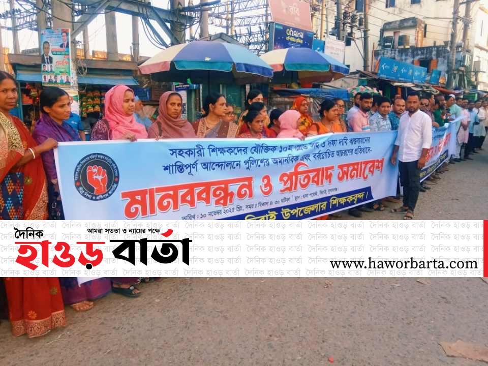 দিরাইয়ে সহকারী শিক্ষকদের তিন দফা দাবিতে মানববন্ধন