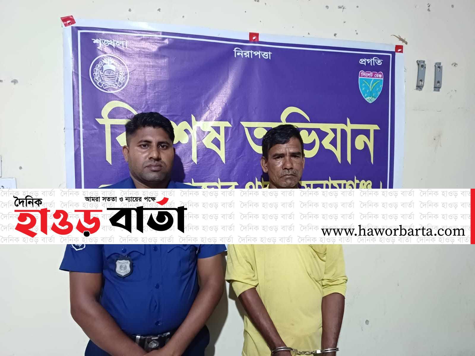এ সময় গাড়ির সাথে থাকা পূর্ব চারগাঁও গ্রামের মৃত মাহমুদ আলীর পুত্র মো. সিরাজ মিয়া (৪৫) কে আটক করা হয়।