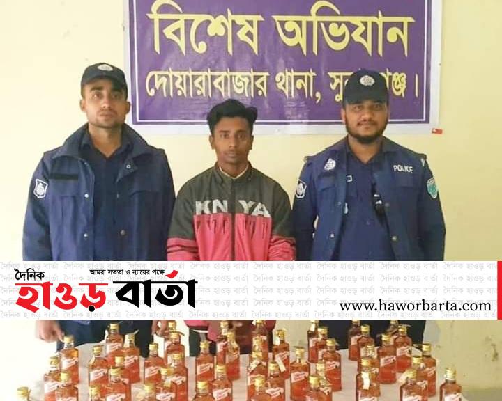 দোয়ারাবাজারে ভারতীয় ৪৫ বোতল মাদকসহ কারবারি আটক