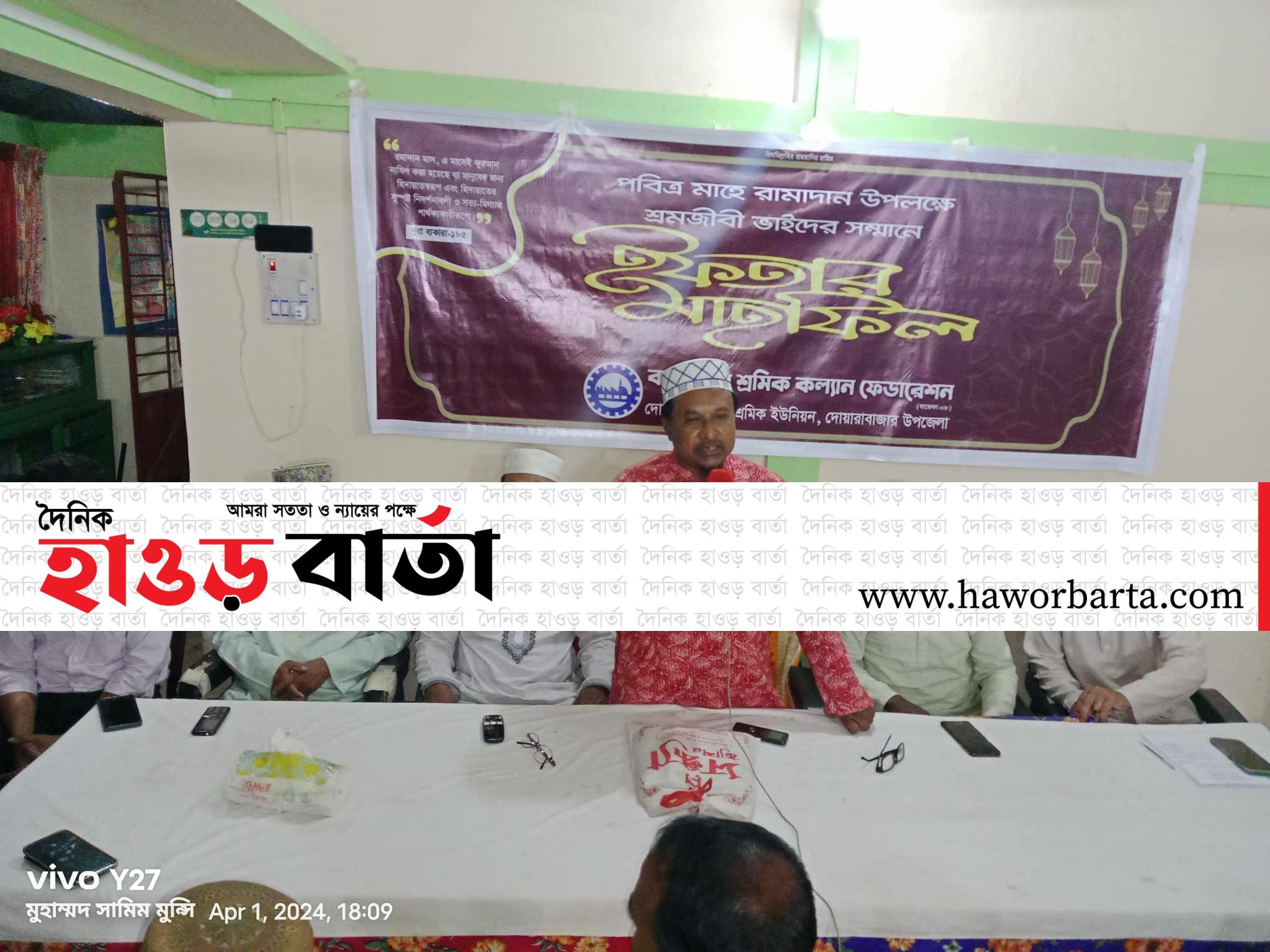এসময় প্রধান অতিথি হিসেবে উপস্থিত ছিলেন, এডভোকেট আবুহানিফ নোমান, সভাপতি, বাংলাদেশ শ্রমিক কল্যান ফেডারেশন, সুনামগঞ্জ জেলা। প্রধান বক্তা হিসেবে উপস্থিত ছিলেন, ডাঃ হারুনুর রশিদ, প্রধান উপদেষ্টা, বাংলাদেশ শ্রমিক কল্যান ফেডারেশন, দোয়ারাবাজার উপজেলা। বিশেষ অতিথি হিসেবে উপস্থিত ছিলেন, মাওঃ দেলাওয়ার হোসাইন,উপদেষ্টা সদস্য, উপজেলা শ্রমিক কল্যান ফেডারেশন। আরোও উপস্থিত ছিলেন, মাওঃ নজরুল ইসলাম, শ্রমিক নেতা শফিউল আলম। বাংলা বাজার ইউনিয়ন সভাপতি, ইউসুফ আলী, সাধারণ সম্পাদক, আলী হোসেন, সভাপতিত্ব করেন, উপজেলা সভাপতি ডাঃ আব্দুল হান্নান, ইফতার মাহফিল পরিচালনা করেন, উপজেলা সাধারণ সম্পাদক, সাইফুল ইসলাম প্রমুখ।