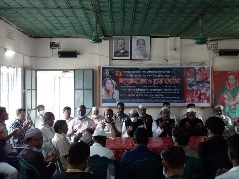 সুনামগঞ্জের ধর্মপাশায় ২১ আগস্ট গ্রেনেড হামলায় জননেত্রী শেখ হাসিনাকে হত্যার চেষ্টা ও আইভি রহমানসহ নিহতদের স্মরণে বিশেষ দোয়া করা হয়েছে। উপজেলা আওয়ামী লীগের উদ্যোগে শনিবার সকাল ১১টায় স্থানীয় দলীয় কার্যালয়ে এই দোয়ার আয়োজন করা হয়। এ সময় উপস্থিত ছিলেন উপজেলা আওয়ামী লীগের সহ সভাপতি ফখরুল ইসলাম চৌধুরী, মো. নাজিম উদ্দিন তালুকদার, মোজাম্মেল হোসেন ইকবাল, সাধারণ সম্পাদক শামীম আহমেদ বিলকিস, যুগ্ম সাধারণ সম্পাদক মোকাররম হোসেন, সাংগঠনিক সম্পাদক মুজিবুর রহমান, দেনিয়ার হোসেন খান পাঠান, দপ্তর সম্পাদক গোলাম আজহারুল ইসলাম দিদার, বীর মুক্তিযোদ্ধা সুলতান আহমদ মজুমদার, রুহুল আমিন তালুকদার, উপজেলা স্বেচ্ছাসেবক লীগের সাবেক সহ সভাপতি এম. এম. এ রেজা পহেল, উপজেলা যুবলীগের সাধারণ সম্পাদক অ্যাড. ইকরাম হোসেন, স্বেচ্ছাসেবক লীগের সম্মেলন প্রস্তুত কমিটির সদস্য সচিব তরিকুল ইসলাম পলাশ, সদস্য সাজিদুল হক, মুশফিকুর রহমান চৌধুরী সোহাগ, উপজেলা ছাত্রলীগের সহ সভাপতি আরমান আহমেদ, যুগ্ম সাধারণ সম্পাদক সালমান আহমেদ, সাংগঠনিক সম্পাদক মেহেদী হাসান বাবর প্রমুখ।