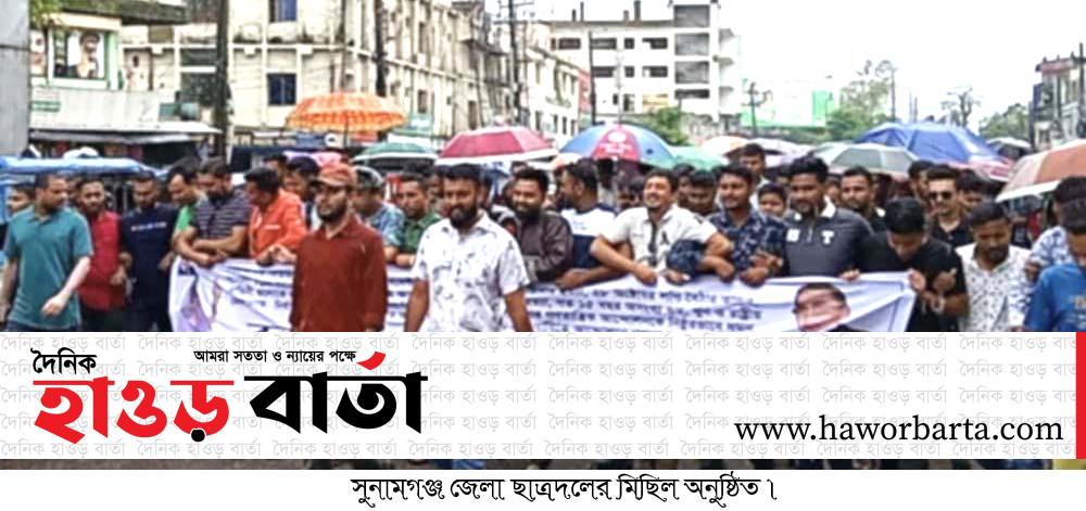 বুধবার সকালে সুনামগঞ্জ জেলা ছাত্রদলের আয়োজনে শহরের পুরাতন বাসস্টেশন এলাকায় বিএনপির দলীয় কার্যালয়ের সামনে থেকে জেলা ছাত্রদলের আহবায়ক জাহাঙ্গীর আলম ও সদস্য সচিব তারেক মিয়া’র নেতৃত্বে বিপুল সংখ্যক নেতাকর্মীরা একত্রিত হয়ে একটি শোর র্যালী বের করে শহরের বিভিন্ন রাস্তা প্রদক্ষিণ শেষে দলীয় কার্যালয়ের সামনে গিয়ে এক শোকসভা অনুষ্ঠিত হয়।