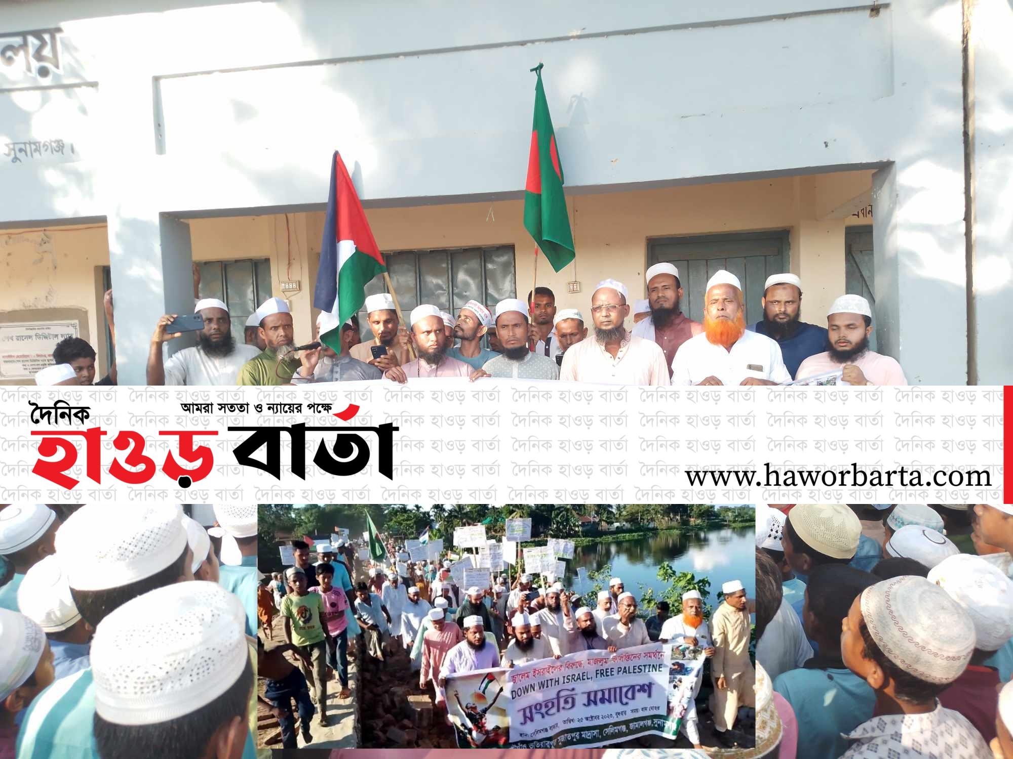 শান্তিপ্রিয় ফিলিস্তিনে অবৈধ দখলদার ইসরায়েলী আগ্রাসন ও বর্বরোচিত হামলার প্রতিবাদে সুনামগঞ্জের জামালগঞ্জ উপজেলার সেলিমগঞ্জ বাজারে বিক্ষোভ মিছিল অনুষ্ঠিত হয়েছে।