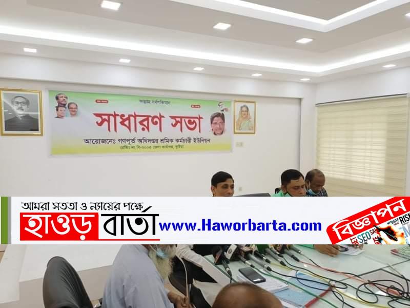 বঙ্গবন্ধুর জন্ম শতবার্ষিকী উপলক্ষে কুষ্টিয়া গণপূর্ত শ্রমিক ইউনিয়নের সাধারণ সভা অনুষ্ঠিত।