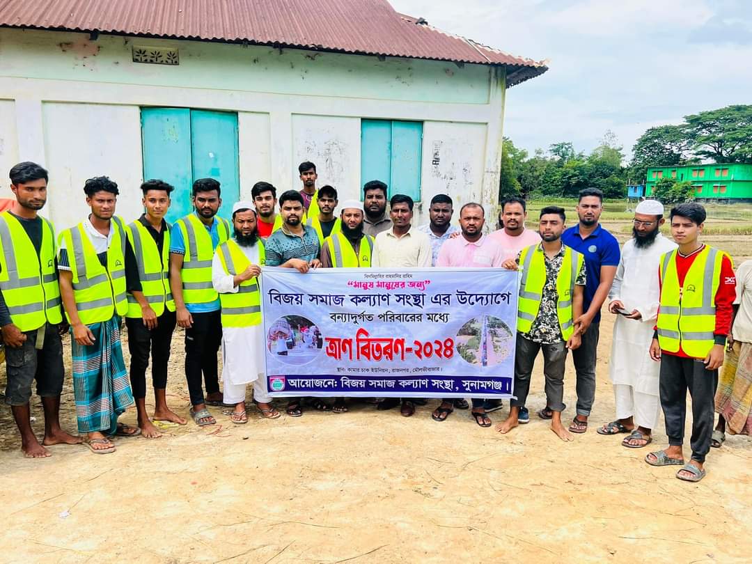 দিনব্যাপী এই মানবিক উপহার নিয়ে বন্যার্তদের দ্বারেদ্বারে পৌঁছে দেওয়া সুনামগঞ্জ জেলার বড় সামাজিক সংগঠন বিজয় সমাজ কল্যাণ সংস্থার প্রতিনিধি দলে সংগঠনের সিনিয়র সহ-সভাপতি আবু তালেব,সহ-সভাপতি মাজেদুল ইসলাম, সাধারণ সম্পাদক শিপন আহমদ, যুগ্ম সাধারণ সম্পাদক শাহনুর সুলতান, সাংগঠনিক সম্পাদক একরাম আলী, জুবায়ের আহমদ অর্থ সম্পাদক হুমায়ুন কবির, সহ-অর্থ সম্পাদক রবিউল হাসান রবি, সদস্য সেবাবুর রহমান সহ স্থানীয় সমাজকর্মী ও বেশ কয়েকটি স্বেচ্ছাসেবক টিম উপস্থিত ছিলেন।