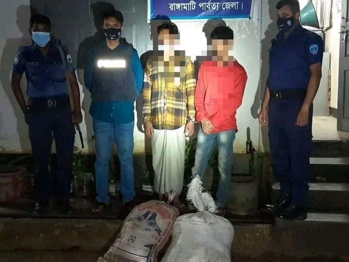 রাঙামাটি জেলাতে রাজস্থলী উপজেলার ৩ নং বাঙালহালিয়া ইউনিয়নের শ্রী শ্রী দক্ষিণেশ্বর কালিমন্দিরের পাঁকা রাস্তার উপরে সবুজ কালারের সিএন জিতে ধরা পড়ে দুইবস্তা( ৮০) লিটার দেশীয় চোলাই মদ। এ সময় ২ জন মদ বহন পাচারকারী আসামী, (১)ফারুক,(২)নূরনবী নামক এ দু জনকে হাতে নাতে আটক করেছে চন্দ্রঘোনা থানার পুলিশ । শুক্রবার রাত ৯ টায় গোপন সংবাদের ভিত্তিতে বাঙালহালিয়া বাজারের প্রাণকেন্দ্রে অভিযান চালিয়ে চন্দ্রঘোনা থানার এস আই মাহফুজ, এ এস আই, পদুমত্তুর ও বাঙালহালিয়া পুলিশ ক্যাম্পের এস অাই ( এবি) কামরুজামান সহ মদ পাচার কারি ও সবুজ কালারে সি এন জি, কে আটক করা হয়।