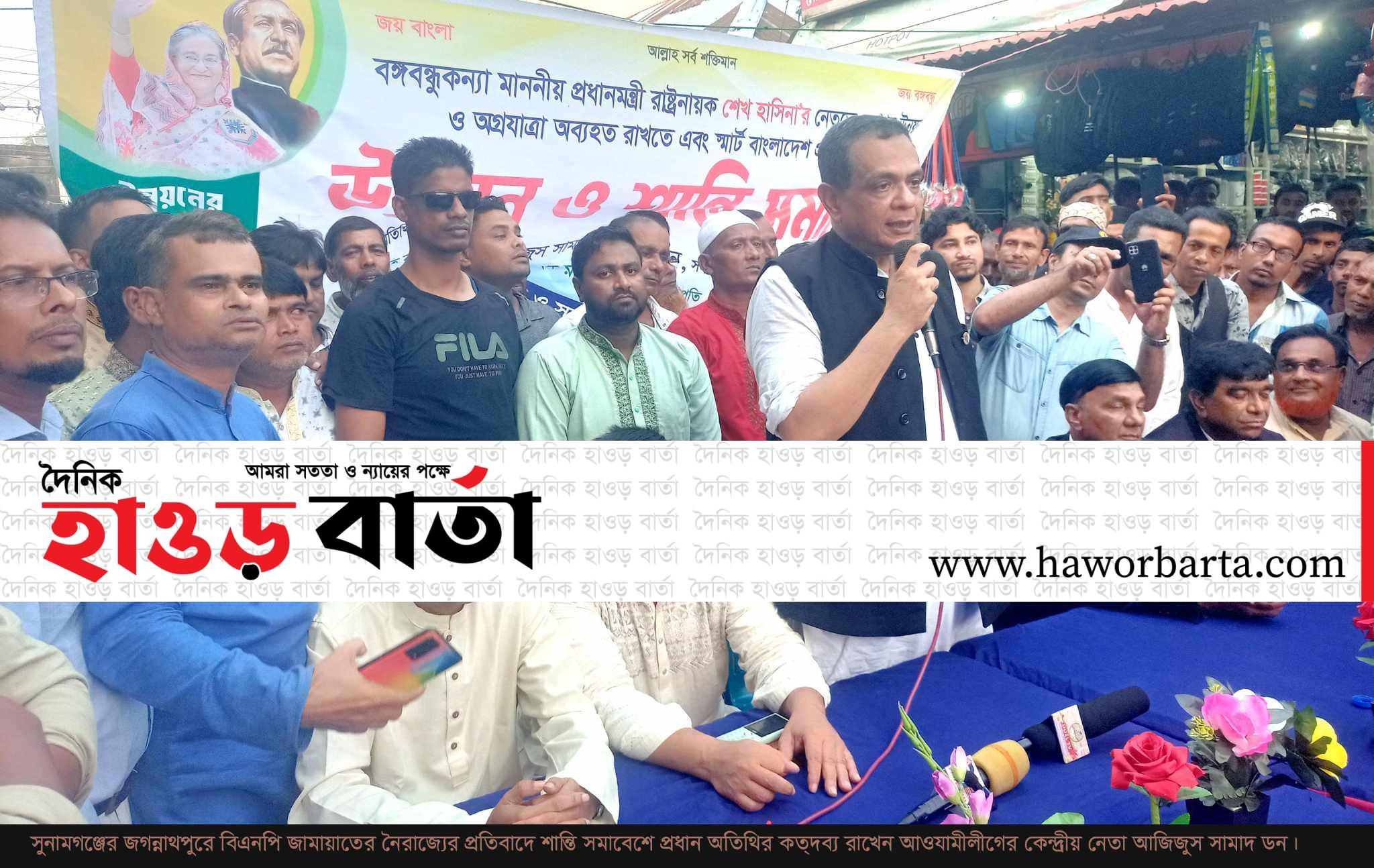 বিএনপি জামায়াতের নেতৃত্বে হরতাল ও অবরোধের নামে দেশব্যাপী নৈরাজ্যের প্রতিবাদে এবং প্রধান বিচারপতির বাসায় হামলা ভাংচুর,পুলিশ সদস্যকে পিটিয়ে হত্যা প্রতিবাদে সুনামগঞ্জের জগন্নাথপুরে সরকারের উন্নয়ন ও শান্তি সমাবেশ অনুষ্ঠিত হয়েছে।