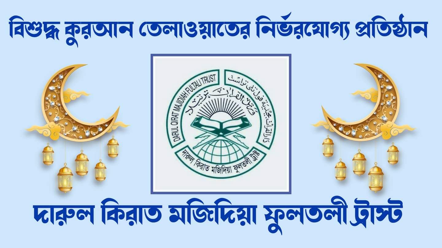 তাই এই মাহে রামাদ্বান মাসে দারুল কিরাত মজিদিয়া ফুলতলী ট্রাস্ট কর্তৃক অনুমোদিত কেরাত প্রশিক্ষণ কেন্দ্রে আপনি ও আপনার ছেলে,মেয়ে,ভাই,বোনদেরকে কেরাত প্রশিক্ষণ কেন্দ্রে ভর্তি করে বিশুদ্ধ তেলাওয়াত শিক্ষা গ্রহণ করার সুযোগ করে দিন।