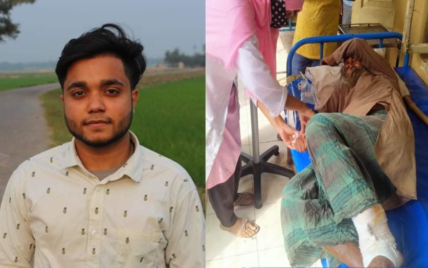 উপজেলা সদরের পূর্ব বাজারের বাসিন্দা আরিফ ময়মনসিংহ নটরডেম কলেজের একাদশ শ্রেণির শিক্ষার্থী। পূজার ছুটিতে দুদিন আগে বাড়িতে এসেছেন তিনি। মঙ্গলবার রাত ১২টার দিকে আরিফ খবর পান তাঁর বাসার অদূরে একজন অসহায় মানুষ বাম পায়ের নিচের অংশে পচন নিয়ে সড়কের পাশে পড়ে আছে। সেখানে গিয়ে আরিফ জানতে পারেন বৃদ্ধ সন্ধ্যা থেকে এভাবে পড়ে আছে। পরে বুধবার সকাল ৭টার দিকে বৃদ্ধকে উপজেলা স্বাস্থ্য কমপ্লেক্সে নিয়ে ভর্তি করেন আরিফ। ওইদিন ১টার দিকে উপজেলা নির্বাহী কর্মকর্তা মো. মুনতাসির হাসান বৃদ্ধকে দেখতে হাসপাতালে যান এবং সার্বিক খোঁজ খবর নেন। এদিকে উপজেলা সমাজসেবা কার্যালয়ের পক্ষ থেকে বৃদ্ধের পরিবারের লোকজনের সাথে ইতোমধ্যে যোগাযোগ করা হয়েছে।