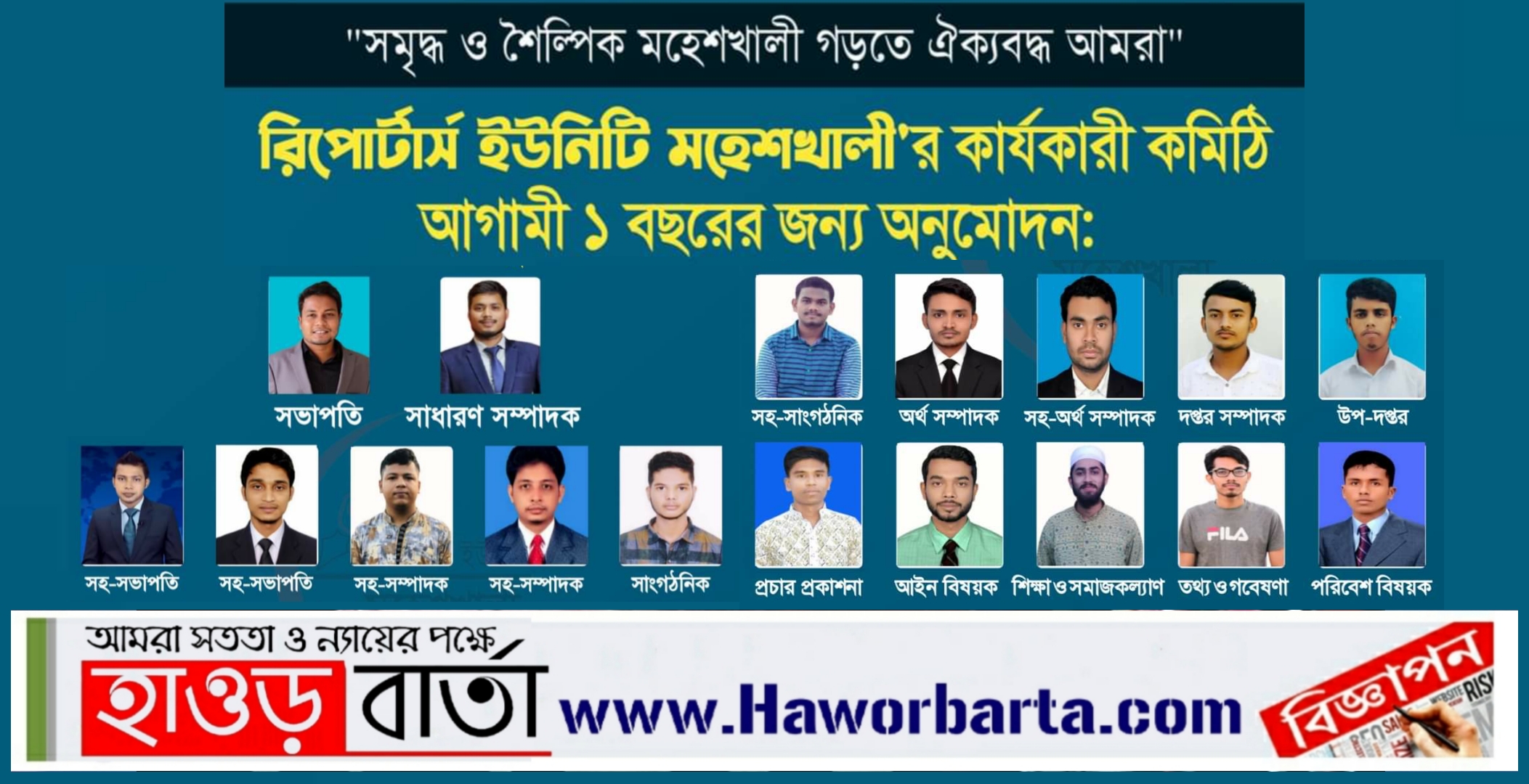 "সমৃদ্ধ ও শৈল্পিক মহেশখালী গড়তে ঐক্যবদ্ধ আমরা" স্লোগানকে সামনে রেখে জসিম উদ্দিনকে সভাপতি এবং ওয়াহেদ হোসেন আমিরকে সাধারণ সম্পাদক করে রিপোর্টার্স ইউনিটি মহেশখালী'র আগামি এক বছরের জন্য কমিটি গঠন করা হয়েছে।