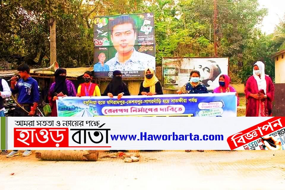 রেলপথের দাবিতে “মণিরামপুর রিপোর্টার্স ক্লাব” এর আয়োজনে মানববন্ধন