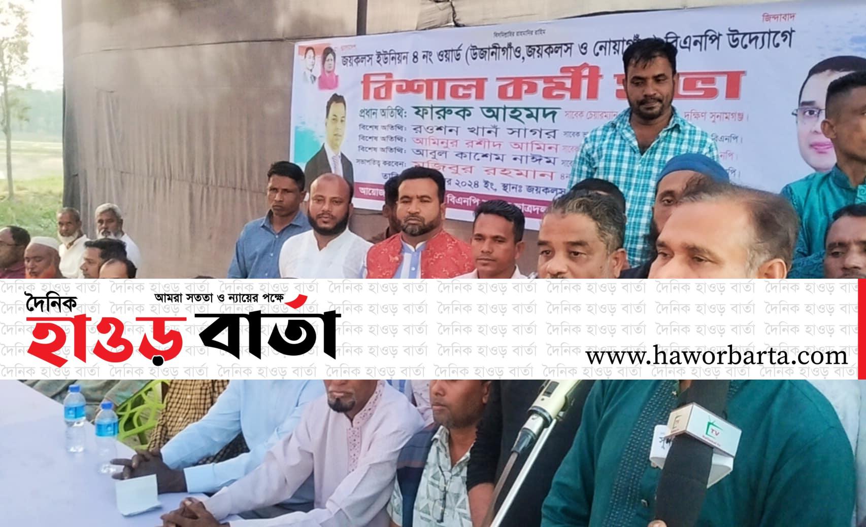 সুনামগঞ্জের শান্তিগঞ্জ উপজেলার জয়কলস ইউনিয়নের ৪ নং ওয়ার্ড(উজানীগাঁও, জয়কলস নোয়াগাঁও) বিএনপি অঙ্গ ও সহযোগী সংগঠনের উদ্যোগে কর্মীসভা অনুষ্ঠিত হয়েছে।