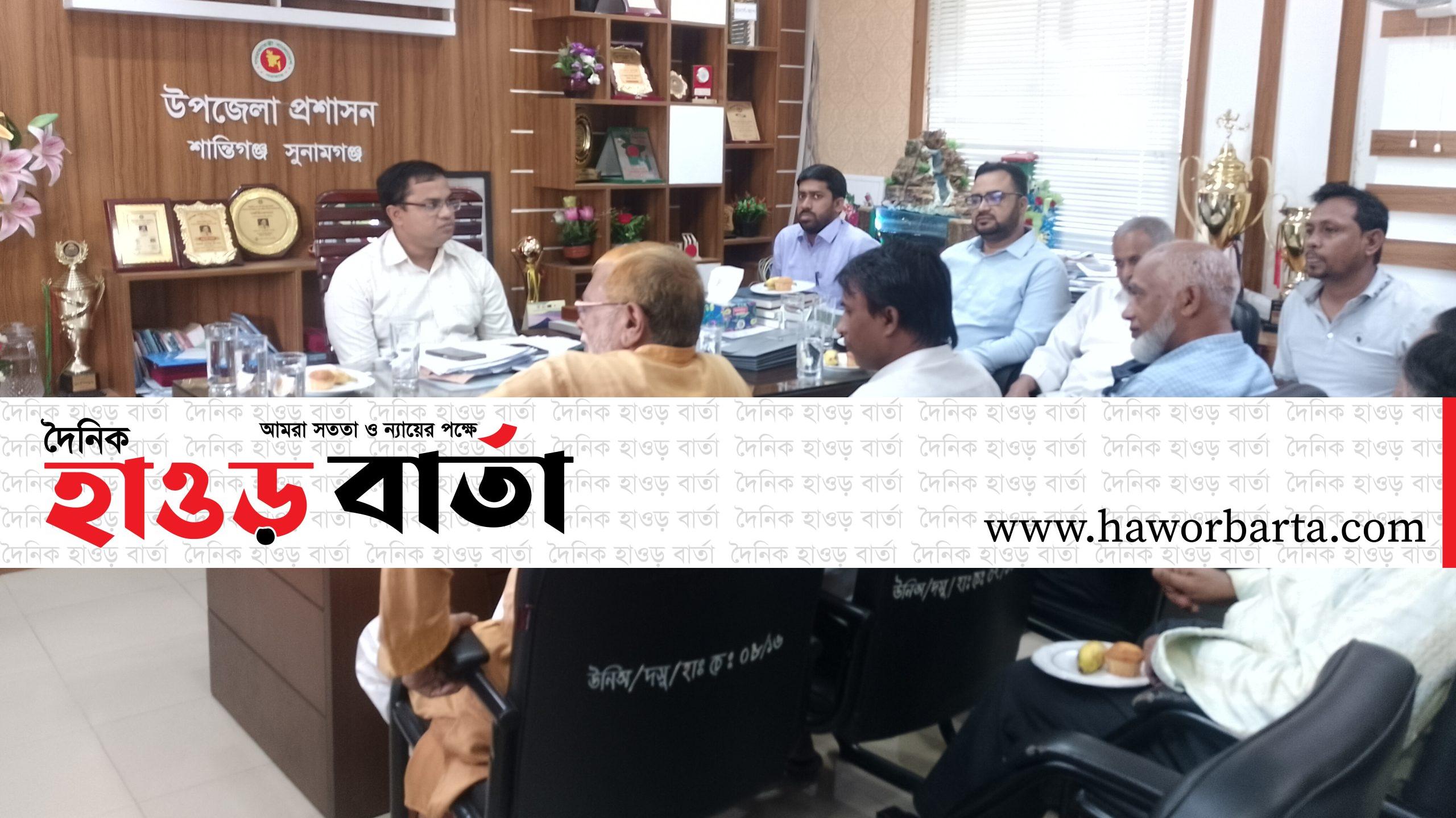 কমিটির সভাপতি উপজেলা নির্বাহী কর্মকর্তা সুকান্ত সাহা'র সভাপতিত্বে সভায় বক্তব্য দেন উপজেলা সহকারি কমিশনার (ভূমি) ফজলে রাব্বী চৌধুরী ,শান্তিগঞ্জ থানার অফিসার ইনচার্জ (ওসি) আকরাম আলী,উপজেলা পরিবার পরিকল্পনা কর্মকর্তা ইকবাল হোসেন,উপজেলা সমাজসেবা কর্মকর্তা তাছলিমা আক্তার লিমা,মৎস্য কর্মকর্তা হোসনে আরা খাতুন, উপজেলা শিক্ষা কর্মকর্তা সেলিম খান, মাধ্যমিক কর্মকর্তা আনিসুর রহমান।