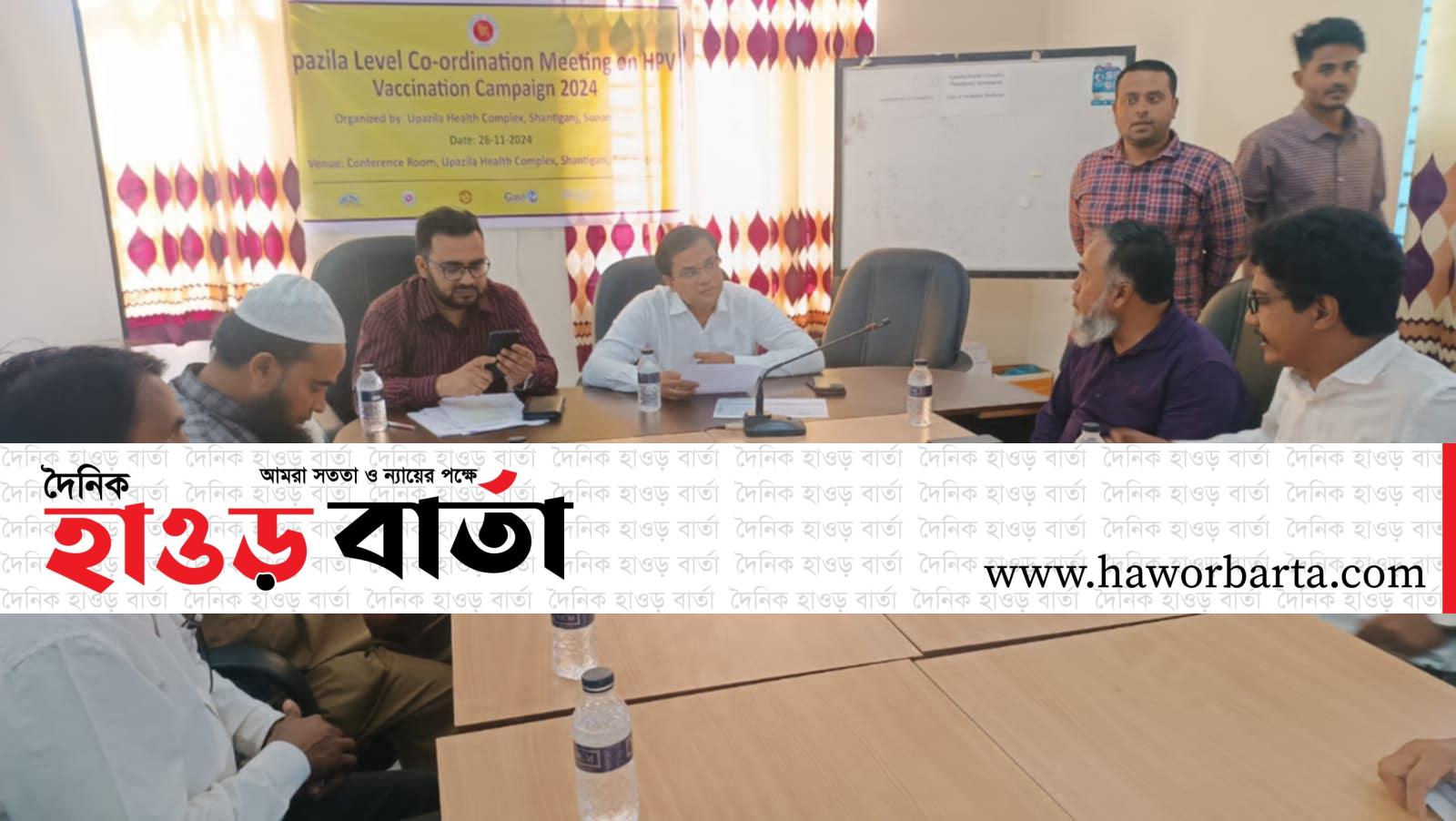 সুনামগঞ্জের শান্তিগঞ্জে উপজেলা স্বাস্থ্য কমপ্লেক্সের আয়োজনে উপজেলা এইচপিভি ভ্যাকসিনেশন ক্যাম্পেইন সমন্বয় কমিটির সভা অনুষ্ঠিত হয়েছে।