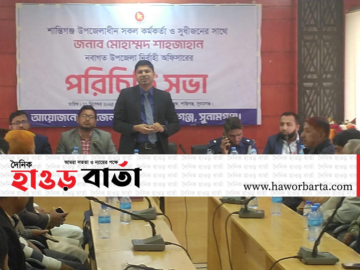 শান্তিগঞ্জে নবাগত ইউএনও শাহজাহানের পরিচিতি সভা