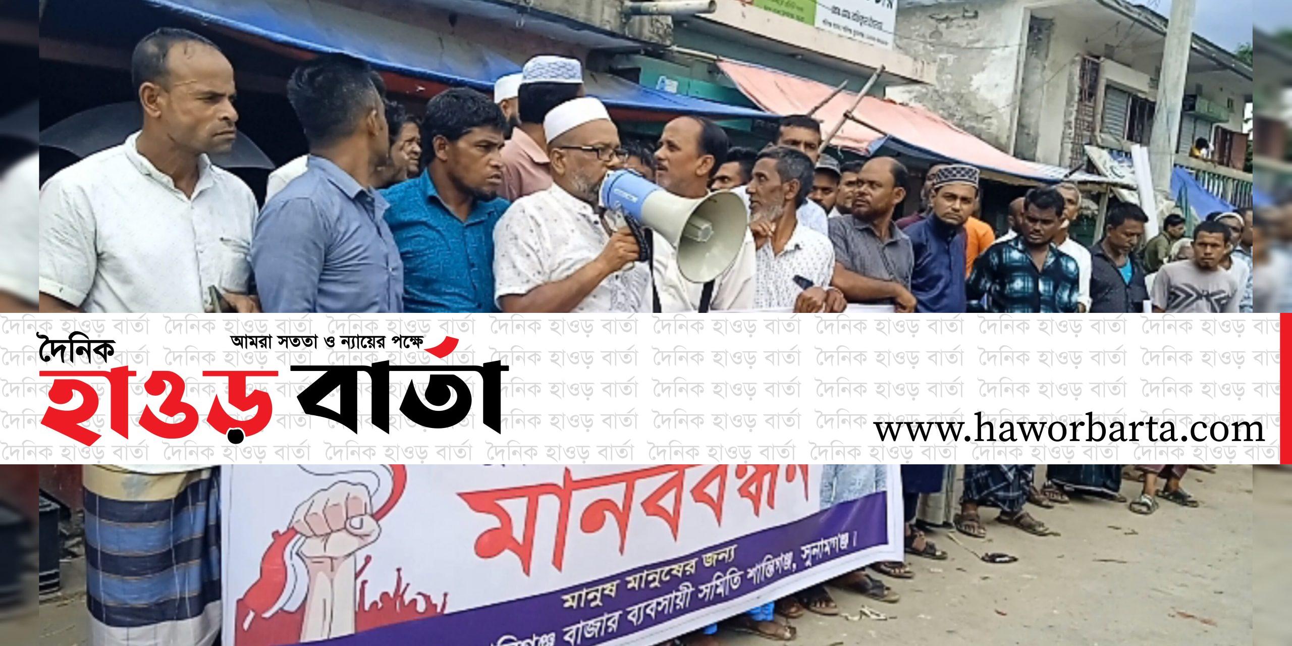 শান্তিগঞ্জে নিখোঁজ ব্যবসায়ী ফখরুলের সন্ধানের দাবিতে মানববন্ধন