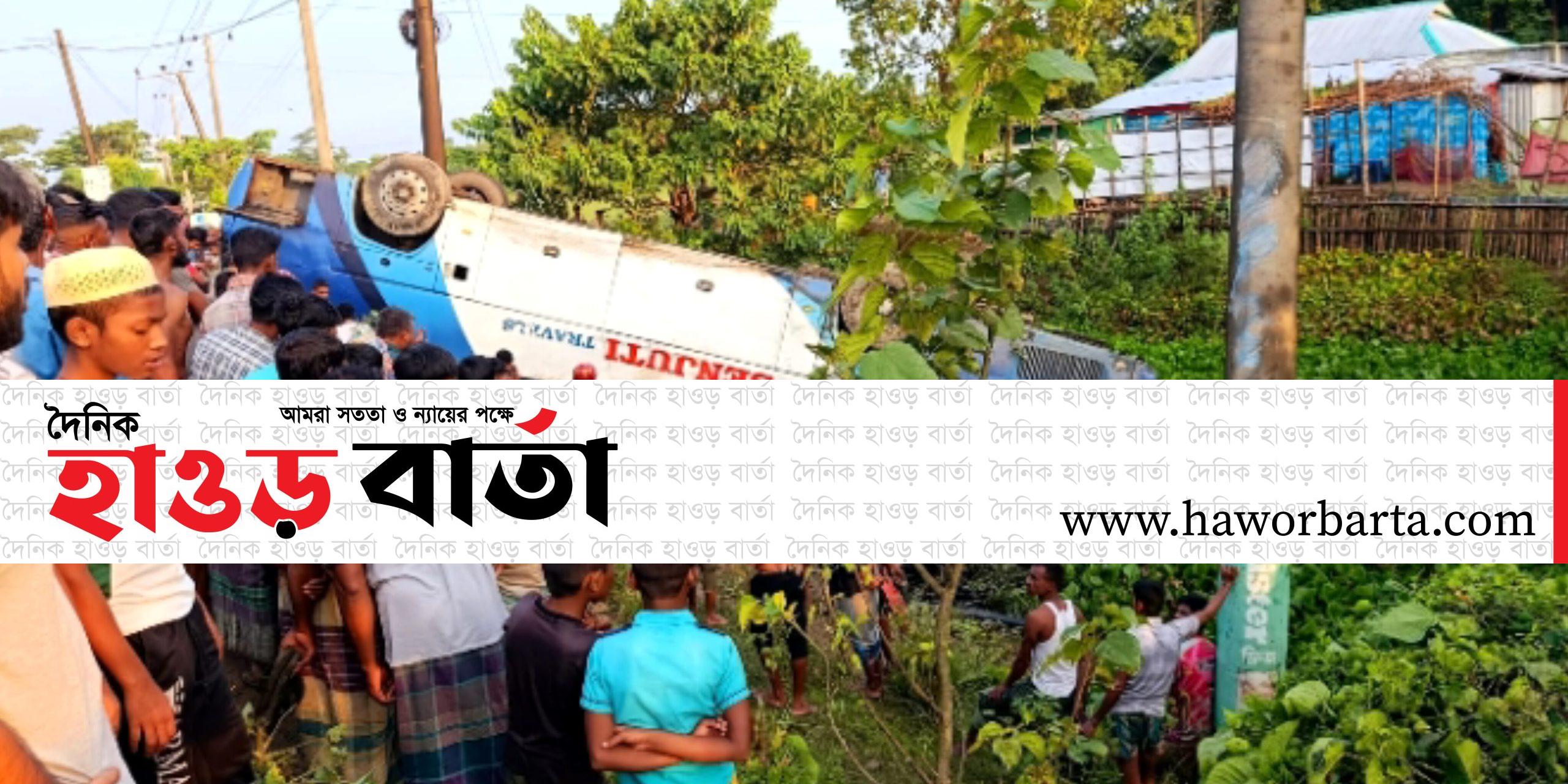 শান্তিগঞ্জে পর্যটকবাহী বাস উল্টে সড়কে প্রাণ গেল মা–মেয়ের