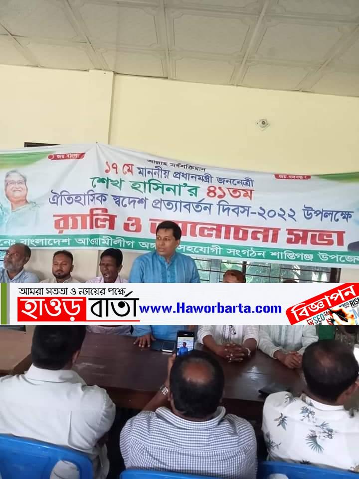 সারাদেশে ন্যায় সুনামগঞ্জের শান্তিগঞ্জে প্রধানমন্ত্রী শেখ হাসিনার ৪১ তম স্বদেশ প্রত্যাবর্তন দিবস উপলক্ষে র্যালী ও আলোচনা সভা অনুষ্ঠিত হয়েছে।