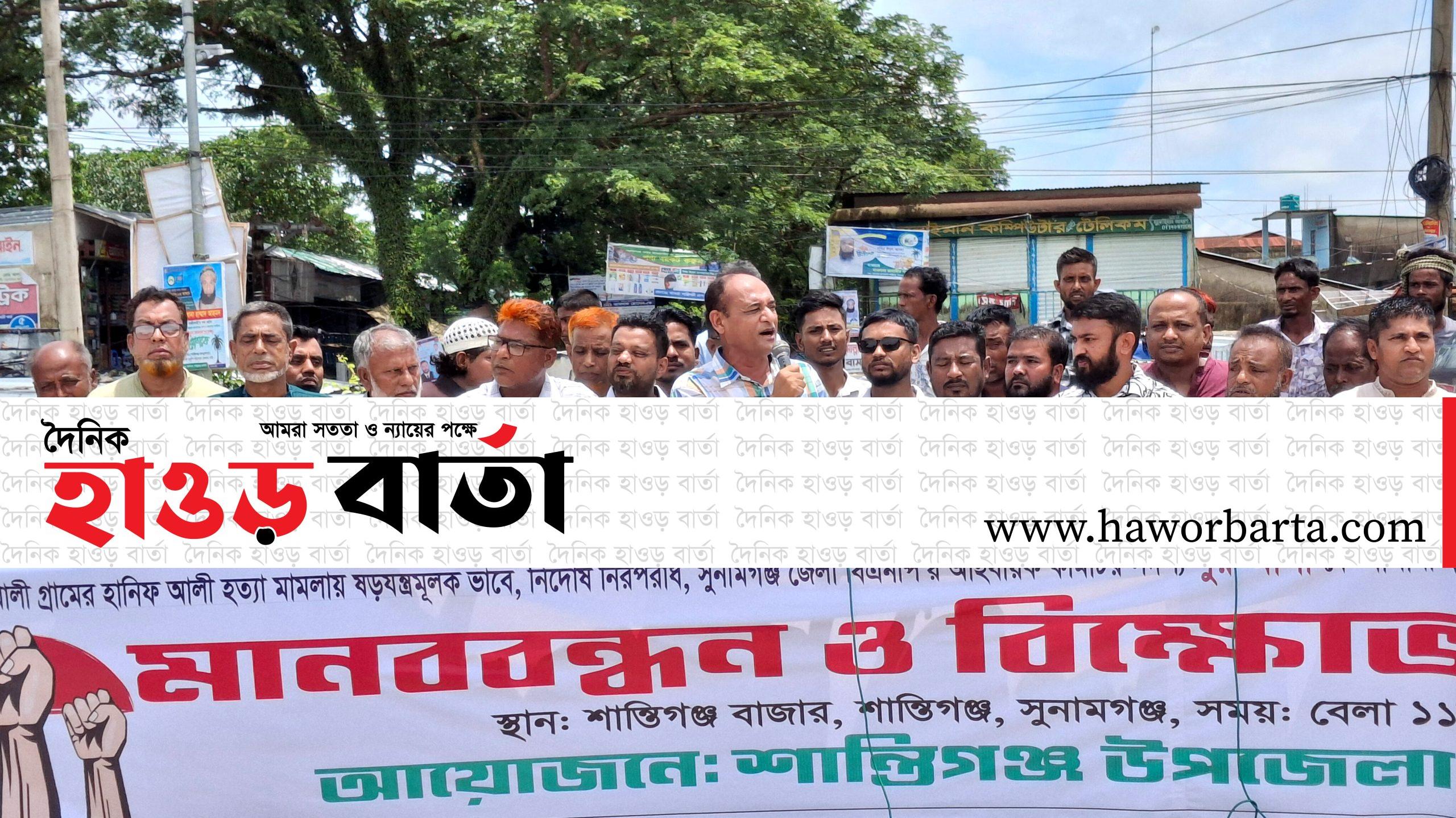 শান্তিগঞ্জে বিএনপি নেতা নূর আলীকে মিথ্যা মামলা থেকে অব্যাহতির দাবিতে মানববন্ধন