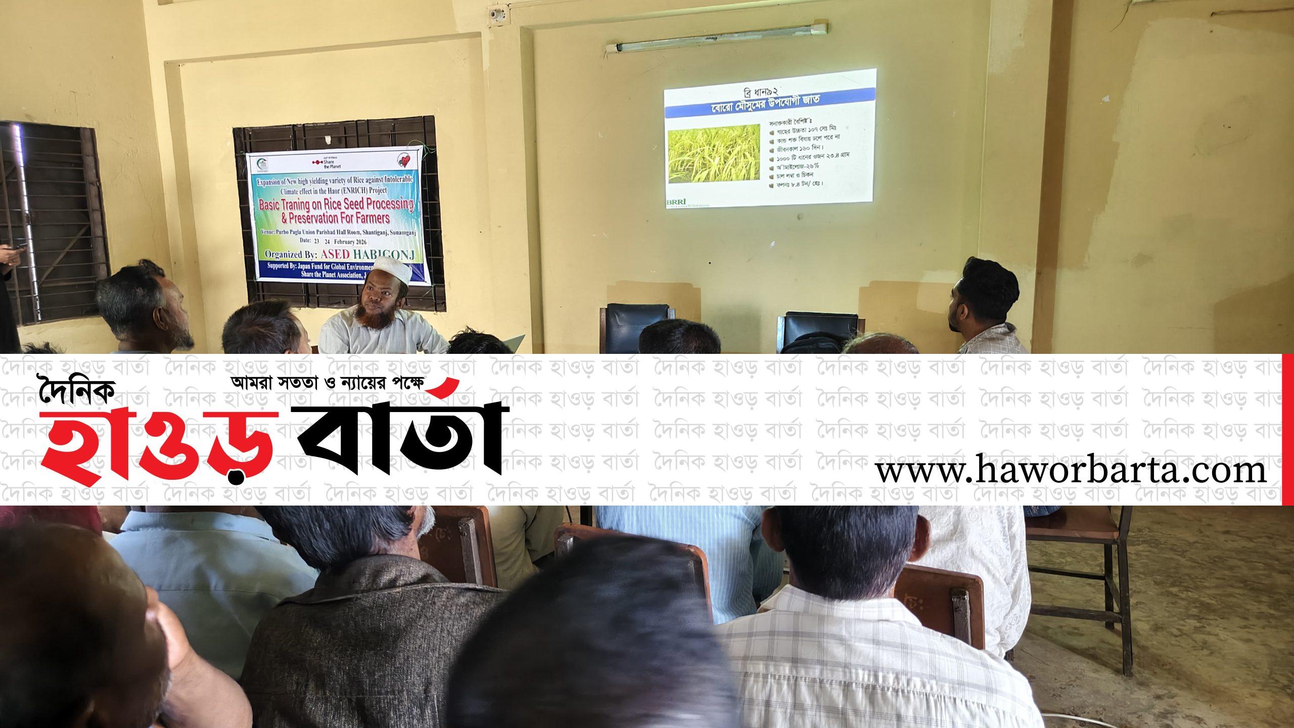শান্তিগঞ্জে বীজ ধান উৎপাদন ও সংরক্ষণে মৌলিক প্রশিক্ষণ শুরু
