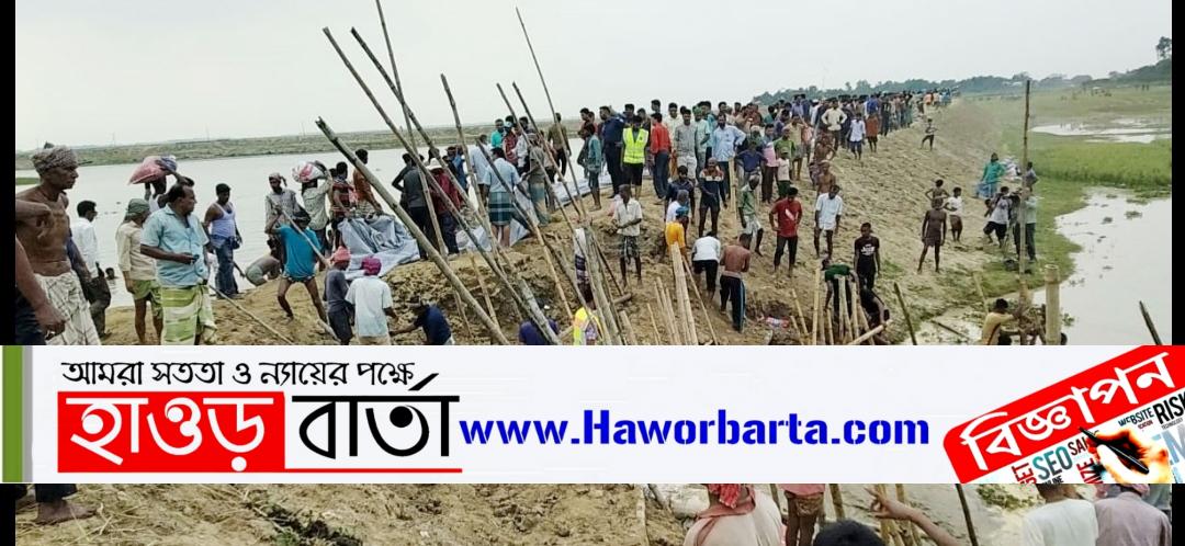 শাল্লায় বাঁধ রক্ষায় চেষ্টায় স্বেচ্ছাসেবক!