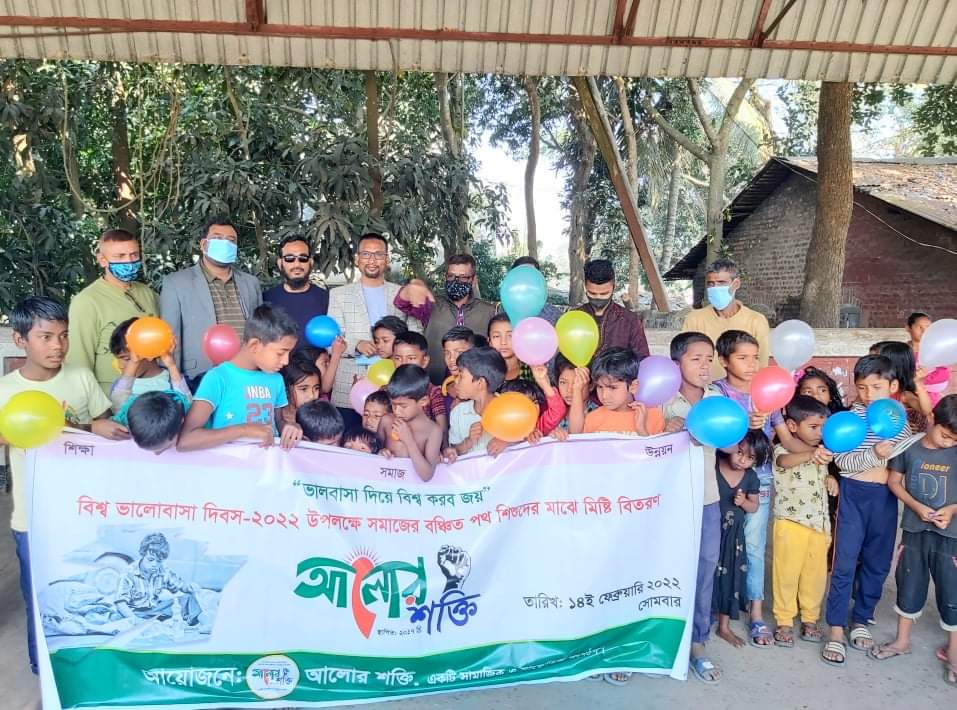 ভালোবাসা দিয়ে বিশ্ব করবো জয় এই প্রতিপাদ্যকে সামনে রেখে বিশ্ব ভালোবাসা দিবসে সমাজের সুবিধা বঞ্চিত শিশুদের মাঝে মিষ্টি ও মাস্ক বিতরণ করেছে সামাজিক সংগঠন আলোর শক্তি।