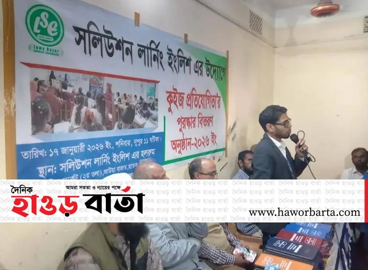 শনিবার (১৭ই জানুয়ারি) সলিউশন লার্নিং ইংলিশের ডিরেক্টর গৌছুল হক নাঈমে'র সভাপতিত্বে পুরুষ্কার বিতরণী ও আলোচনা সভায় বিশেষ অতিথি'র বক্তব্য রাখেন বিশিষ্ট শিক্ষানুরাগী শামসুল কবির মুহিত, অসীম চক্রবর্তী ও মাওলানা কমর উদ্দিন।