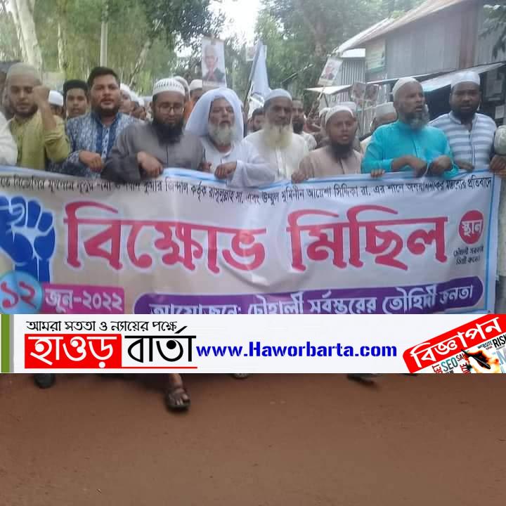সিরাজগঞ্জের চৌহালীতে হাজার হাজার ধর্মপ্রাণ মানুষেরা বিক্ষোভ ও মানববন্ধন।