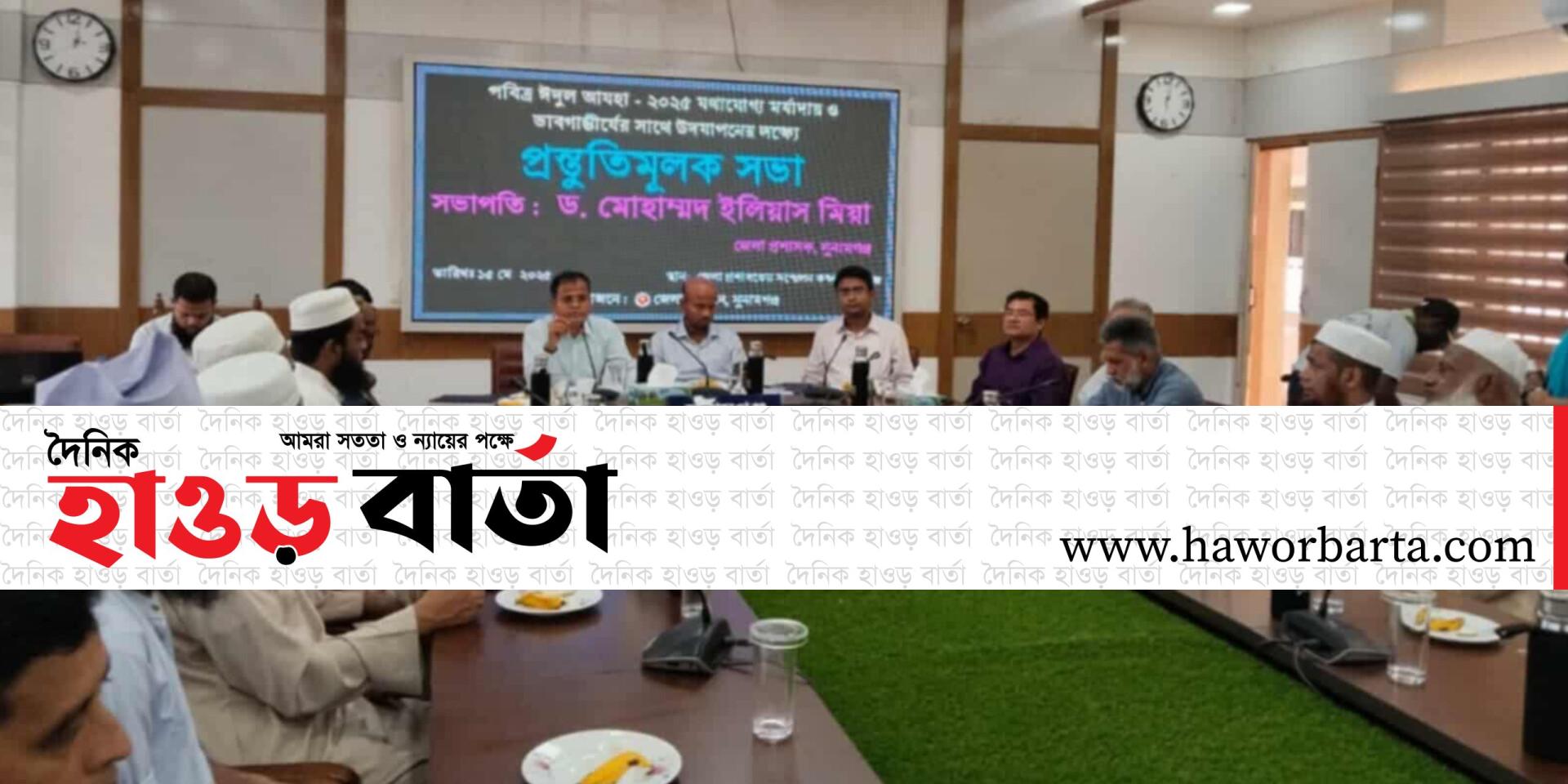 সুনামগঞ্জে ঈদুল আযহা উদযাপন উপলক্ষ্যে প্রস্তুতি মূলকসভা অনুষ্ঠিত