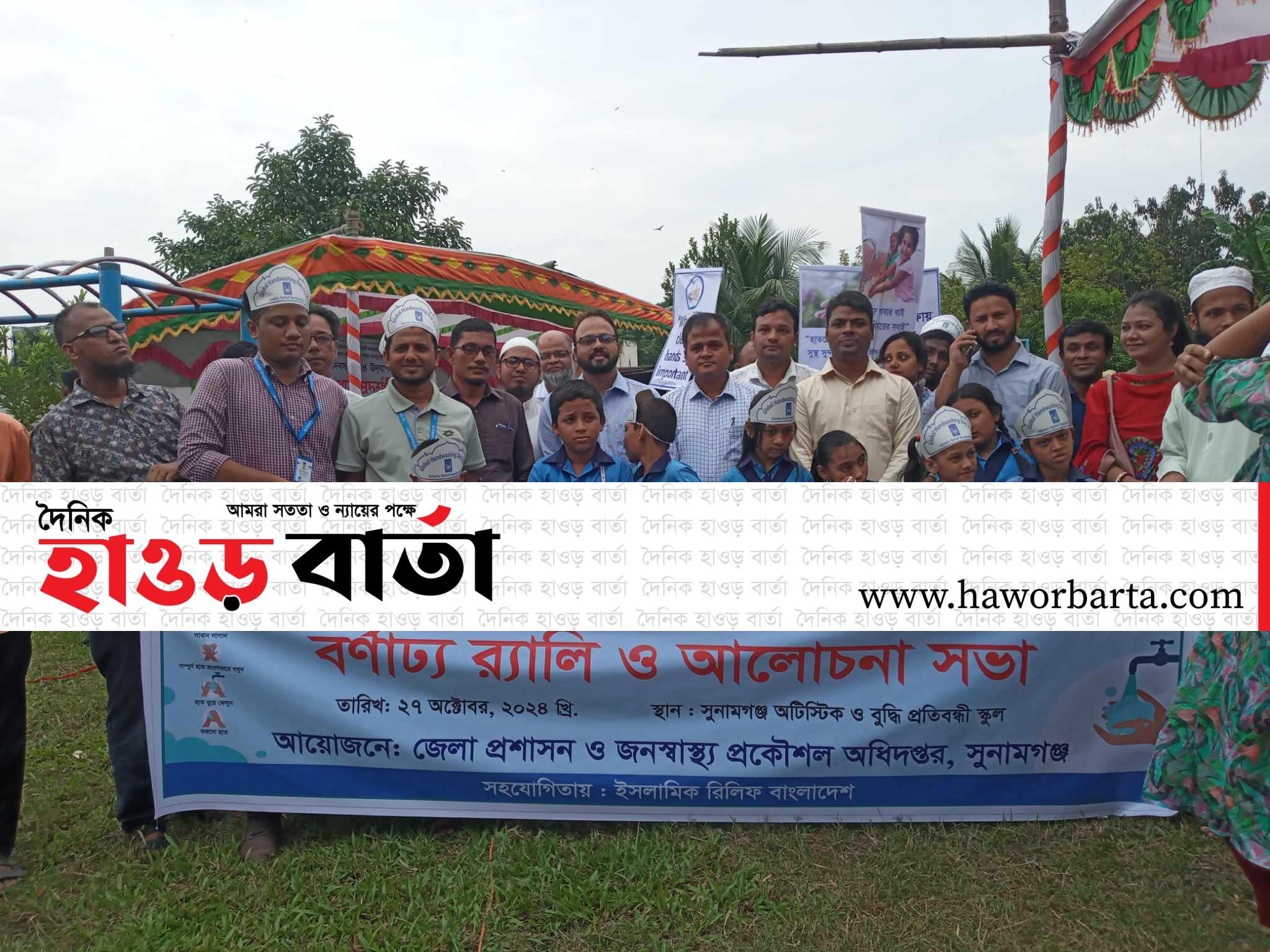 রবিবার (২৭ অক্টোবর) সকাল ১০টায় পৌর শহরের সুনামগঞ্জ অটিস্টিক ও বুদ্ধি প্রতিবন্ধী স্কুল প্রাঙ্গণে জেলা প্রশাসন ও জনস্বাস্থ্য প্রকৌশল অধিদপ্তরের উদ্যোগে ইসলামিক রিলিফ বাংলাদেশ এর সহযোগিতায়, বর্নাঢ্য র্যালি, আলোচনা সভা, হাত ধোয়া প্রদর্শনীর আয়োজন করা হয়েছে।