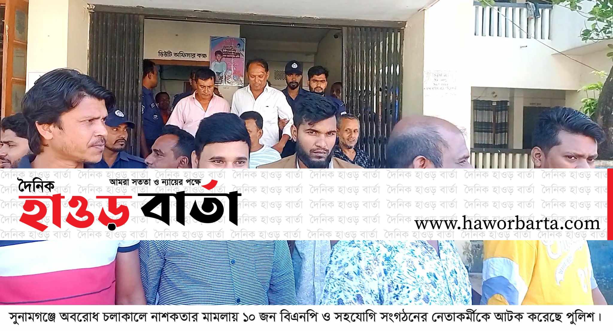 সুনামগঞ্জে নাশকতার মামলায় ১০ জন বিএনপির নেতাকর্মীকে আটক করেছে পুলিশ