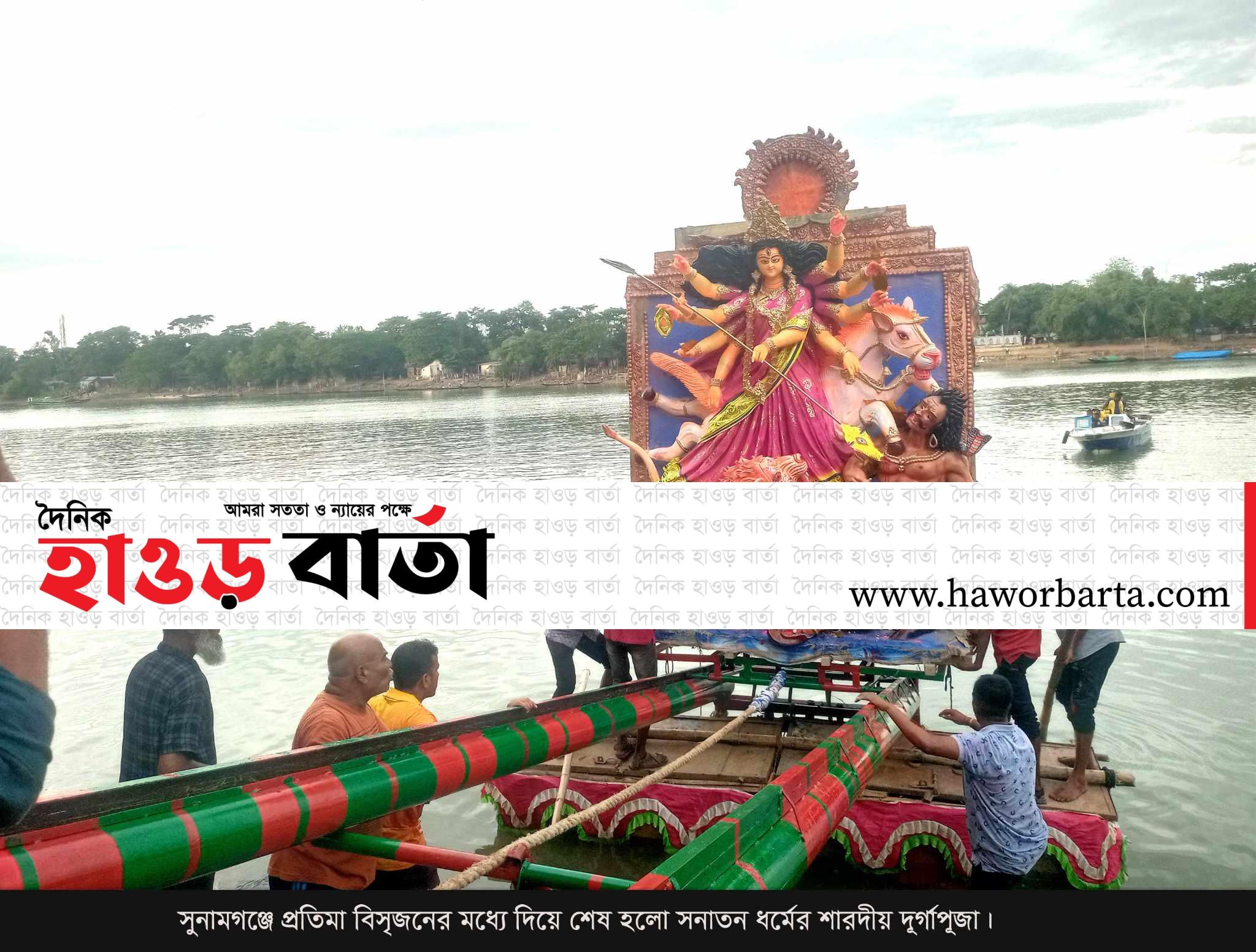 মঙ্গলবার বিকেলে সুনামগঞ্জ পৌর শহরের ২৫টি মন্ডপে অনুষ্ঠিত দূর্গা প্রতিমা নিয়ে হিন্দু সম্প্রদায়ের ভক্ত অনুসারীরা একে একে শহরের সরকারী জুবিলী উচ্চ বিদ্যালয়(বালুর) মাঠে এসে জড়ো হন এবং সুরমা নদীতে প্রতিমা বির্সজনের উদ্বোধন করেন জেলা প্রশাসক দিদারে আলম মোহাম্মদ মাকসুদ চৌধুরী,পুলিশ সুপার মোঃ এহসান শাহ ও পৌর মেয়র নাদের বখত ।